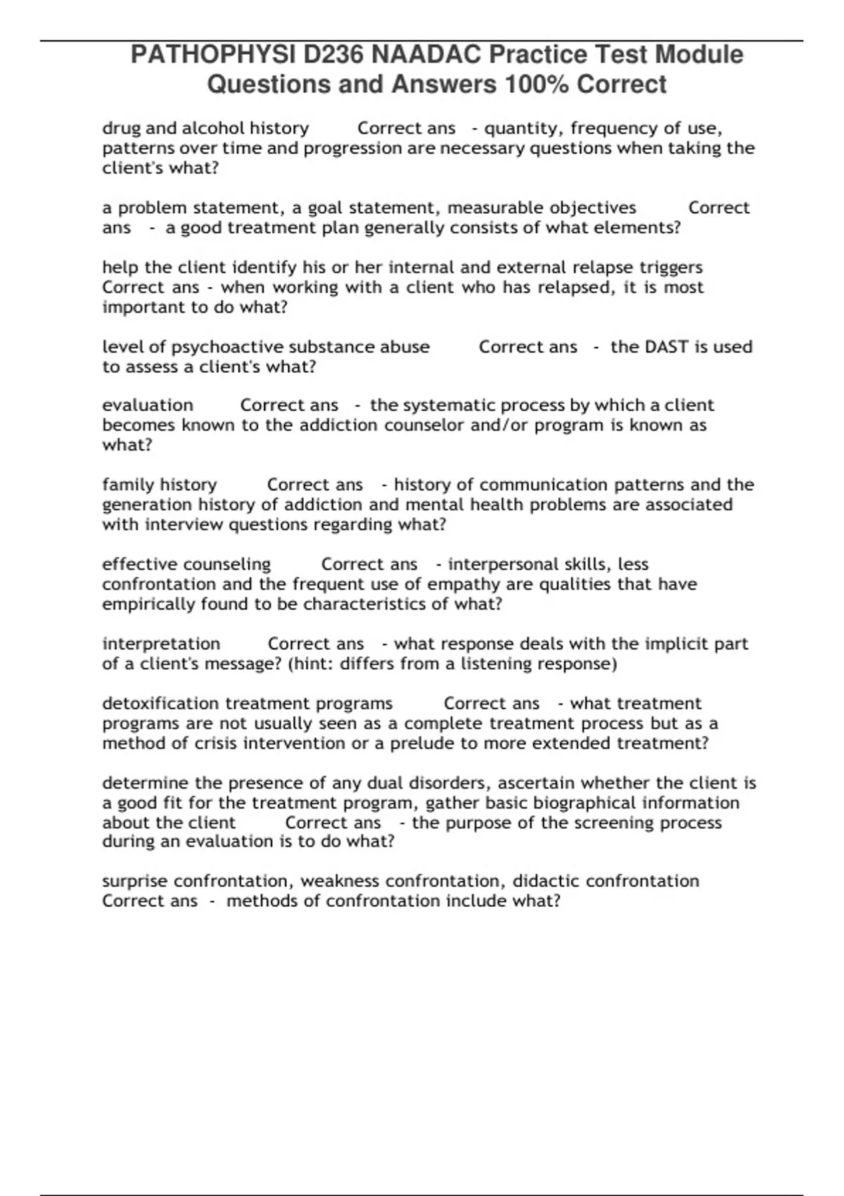 PATHOPHYSI D236 NAADAC Practice Test Module