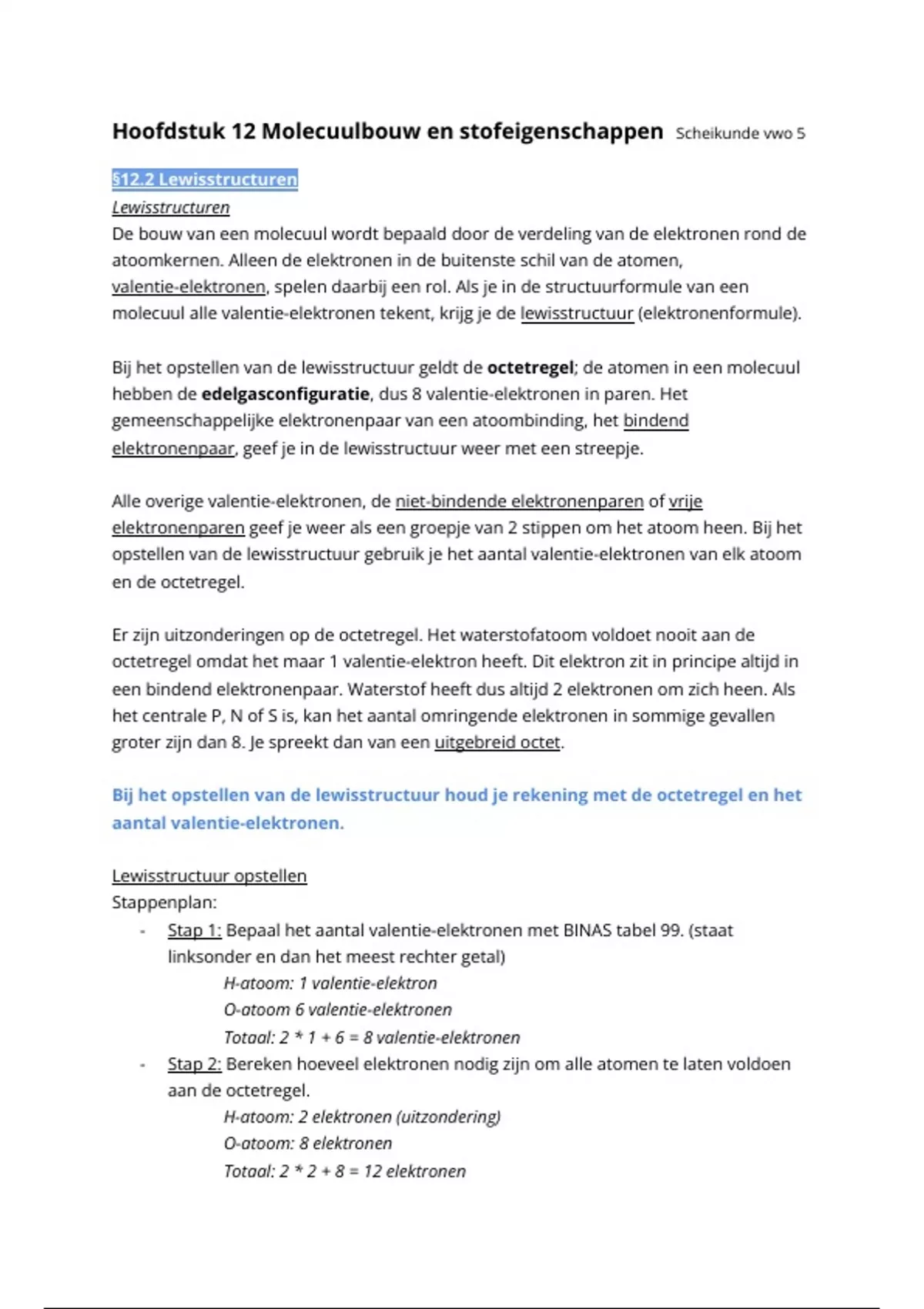 Bij het opstellen van de lewisstructuur houd je rekening met de octetregel en het