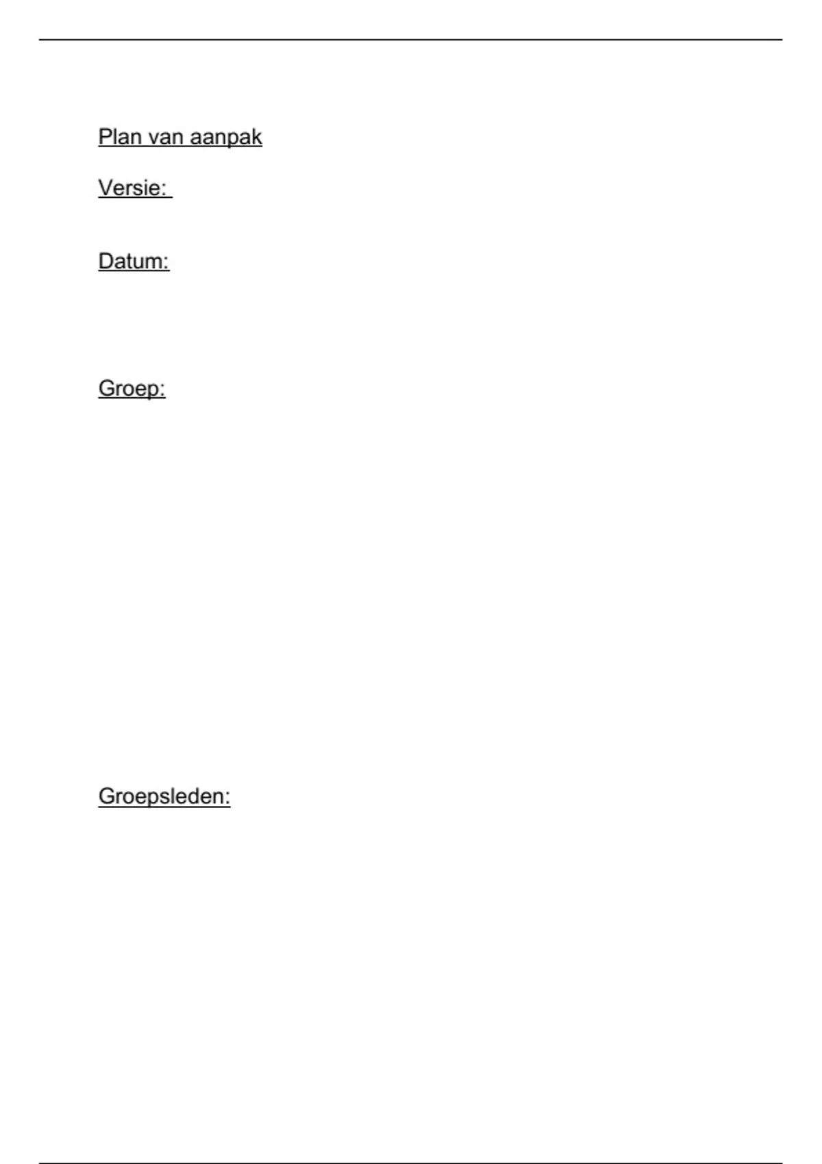 Prince 2 format voor het opstellen van een plan van aanpak (niet ingevuld).