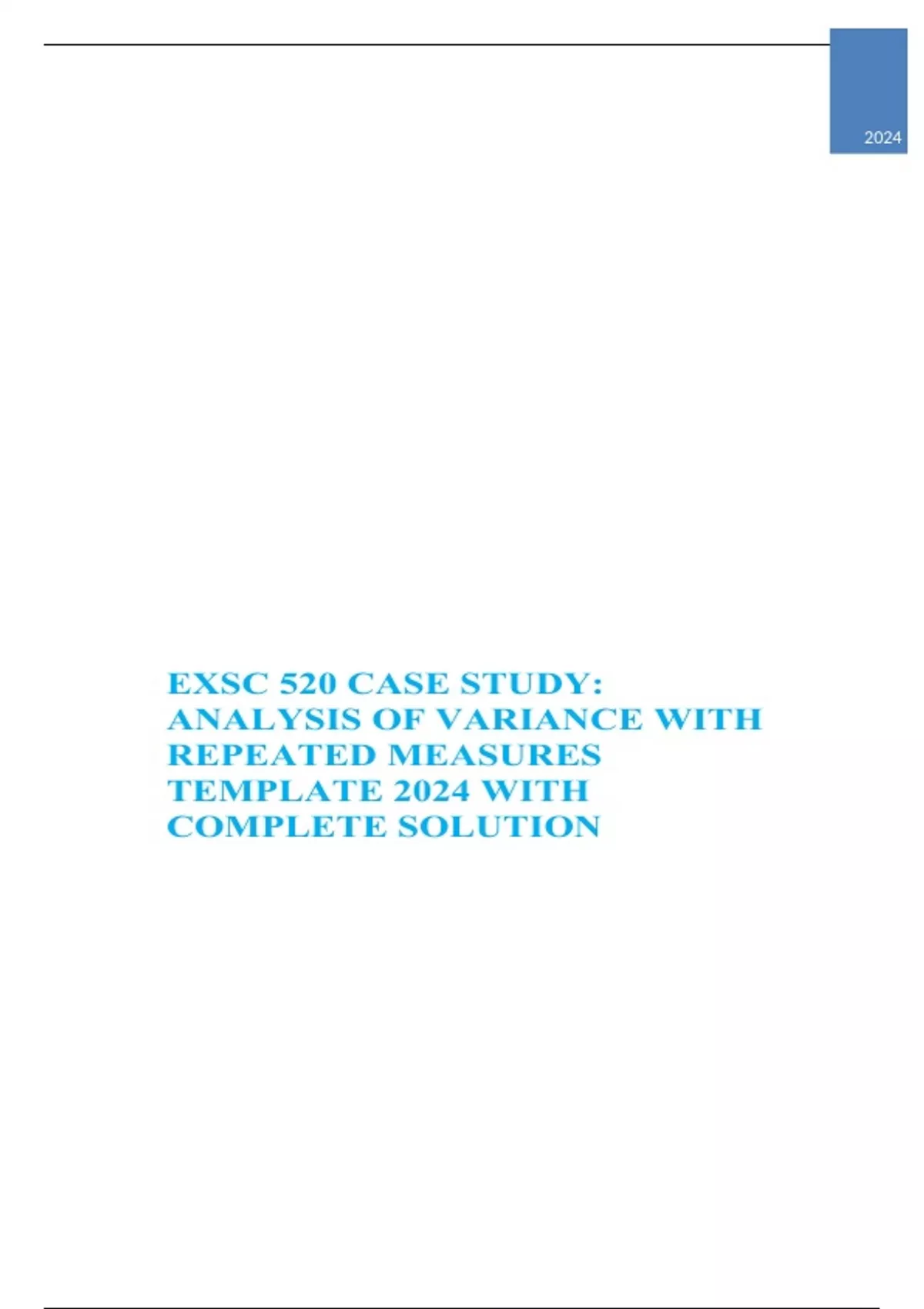 EXSC 520 CASE STUDY: ANALYSIS OF VARIANCE WITH REPEATED MEASURES TEMPLATE 2024 WITH COMPLETE SOLUTION