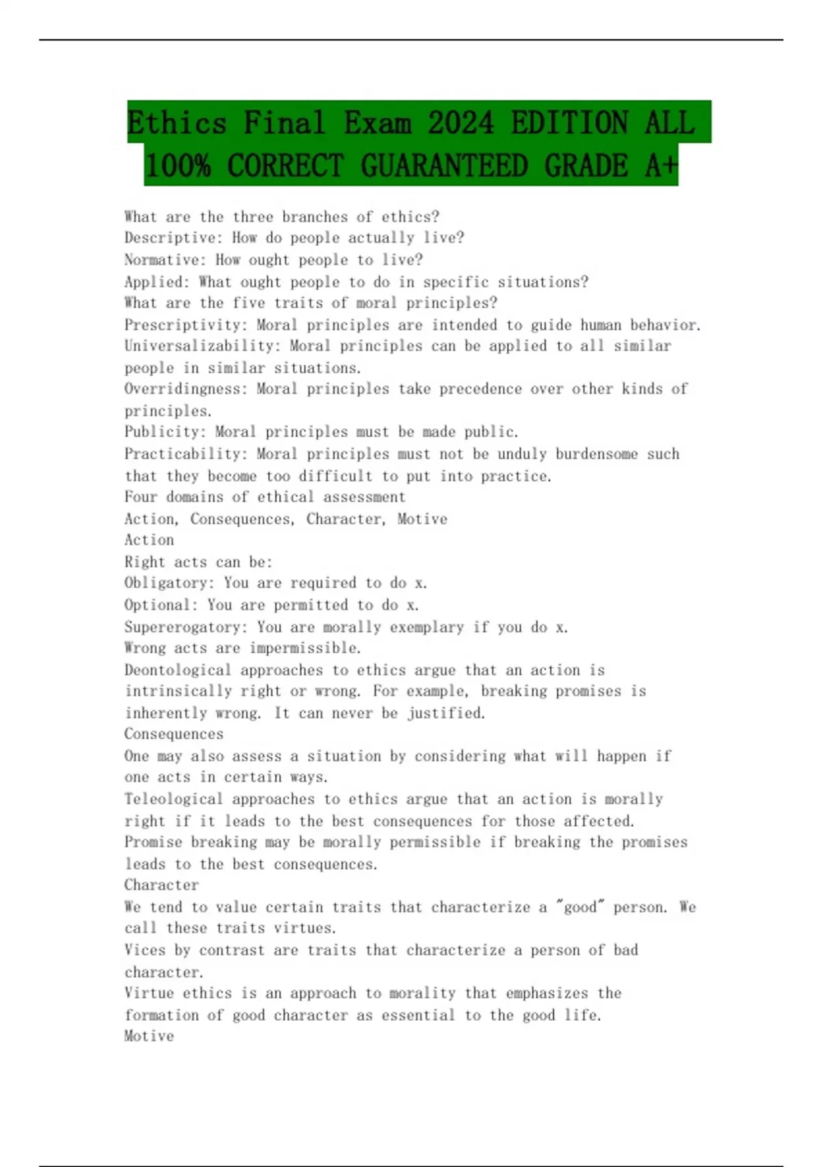 Ethics Final Exam 2024 EDITION ALL 100% CORRECT GUARANTEED GRADE A+
