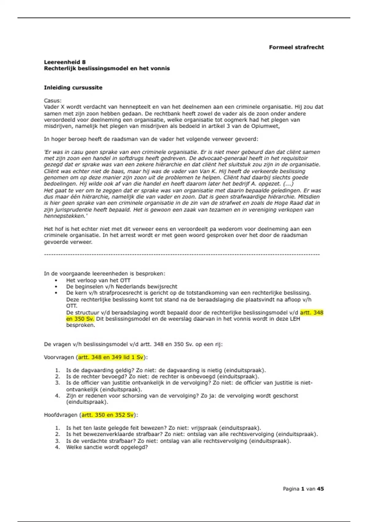 - Art. 348 Sv. = De voorvragen (formele of procedurele vragen).