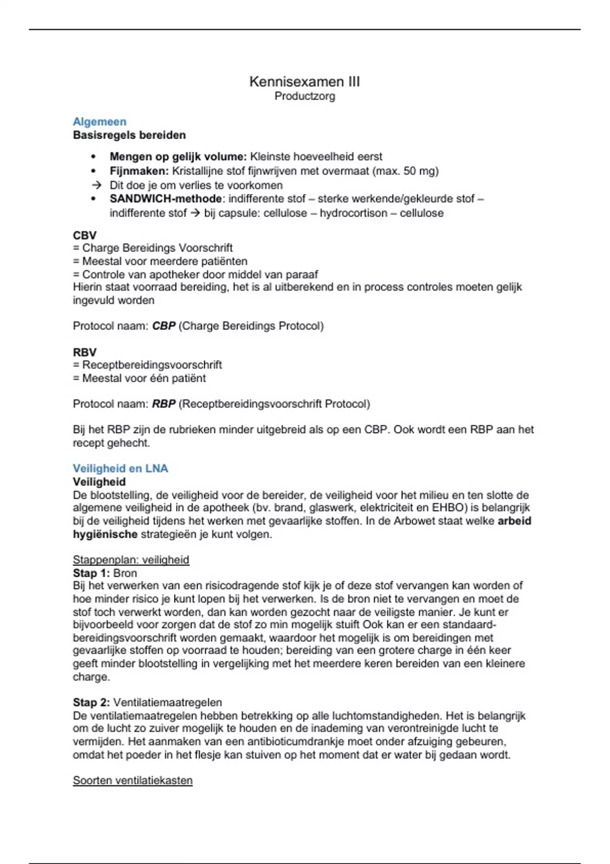Samenvatting van productzorg, bevat alle onderwerpen die nodig zijn voor de examen