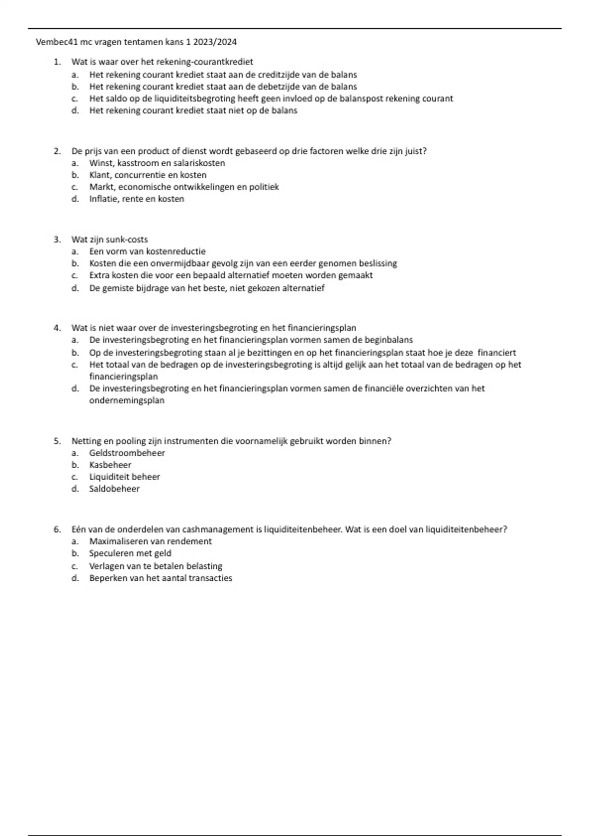 Tentamen voorbereidingen + antwoorden bedrijfseconomie 2 vembec21 vastgoedkunde. 3 oefententamens.