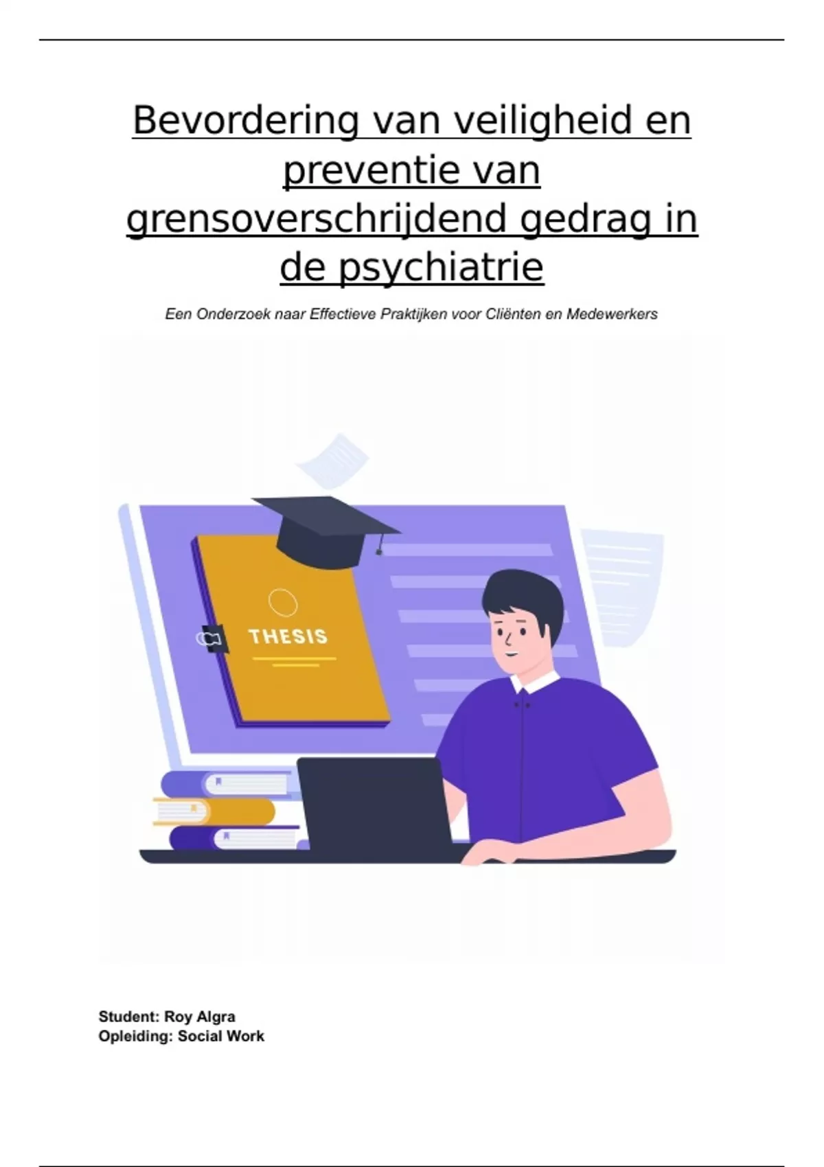 Voor u ligt het afstudeeronderzoek, waarin vierdejaars Social Work student Roy Algra een