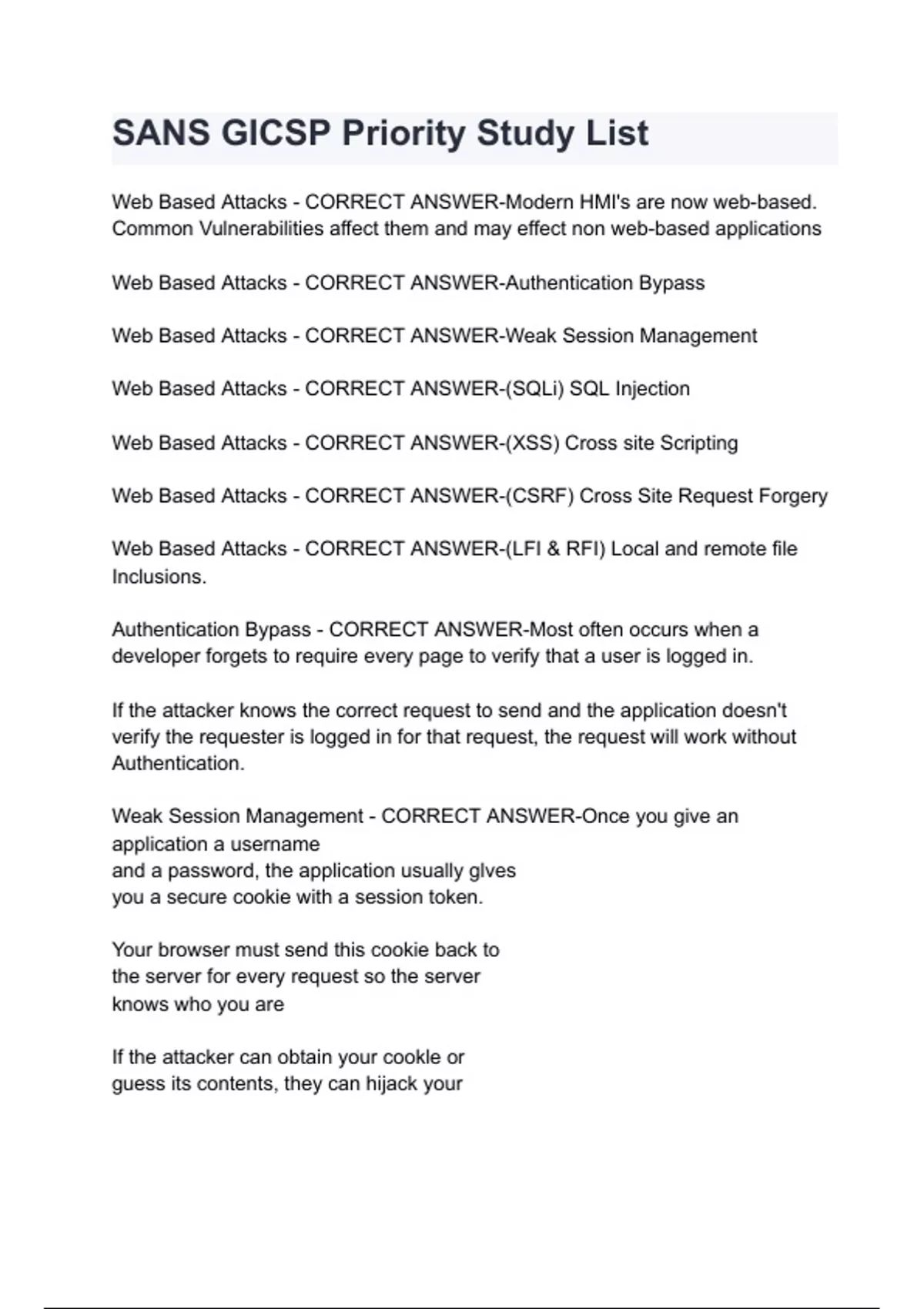 SANS GICSP Priority Study List