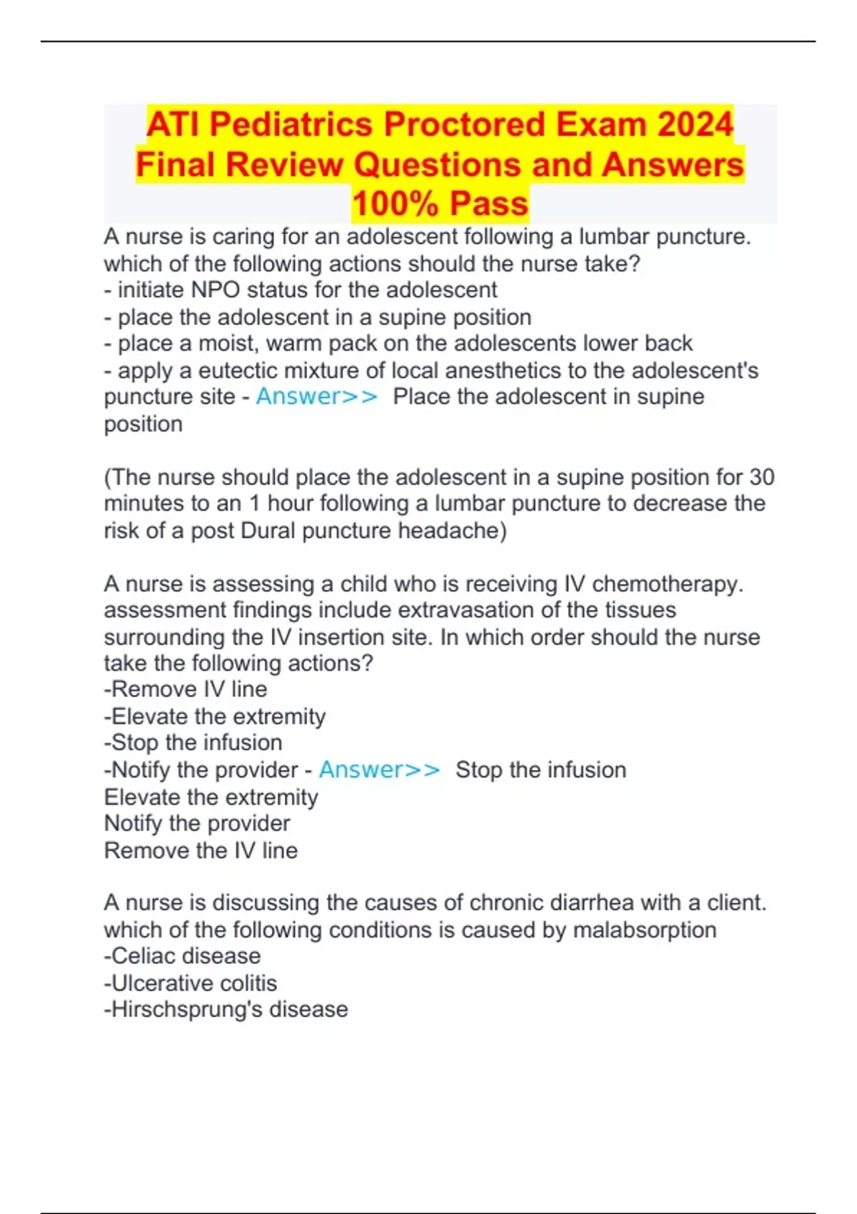 ATI Pediatrics Proctored Exam 2024 Final Review Questions and Answers 100% Pass