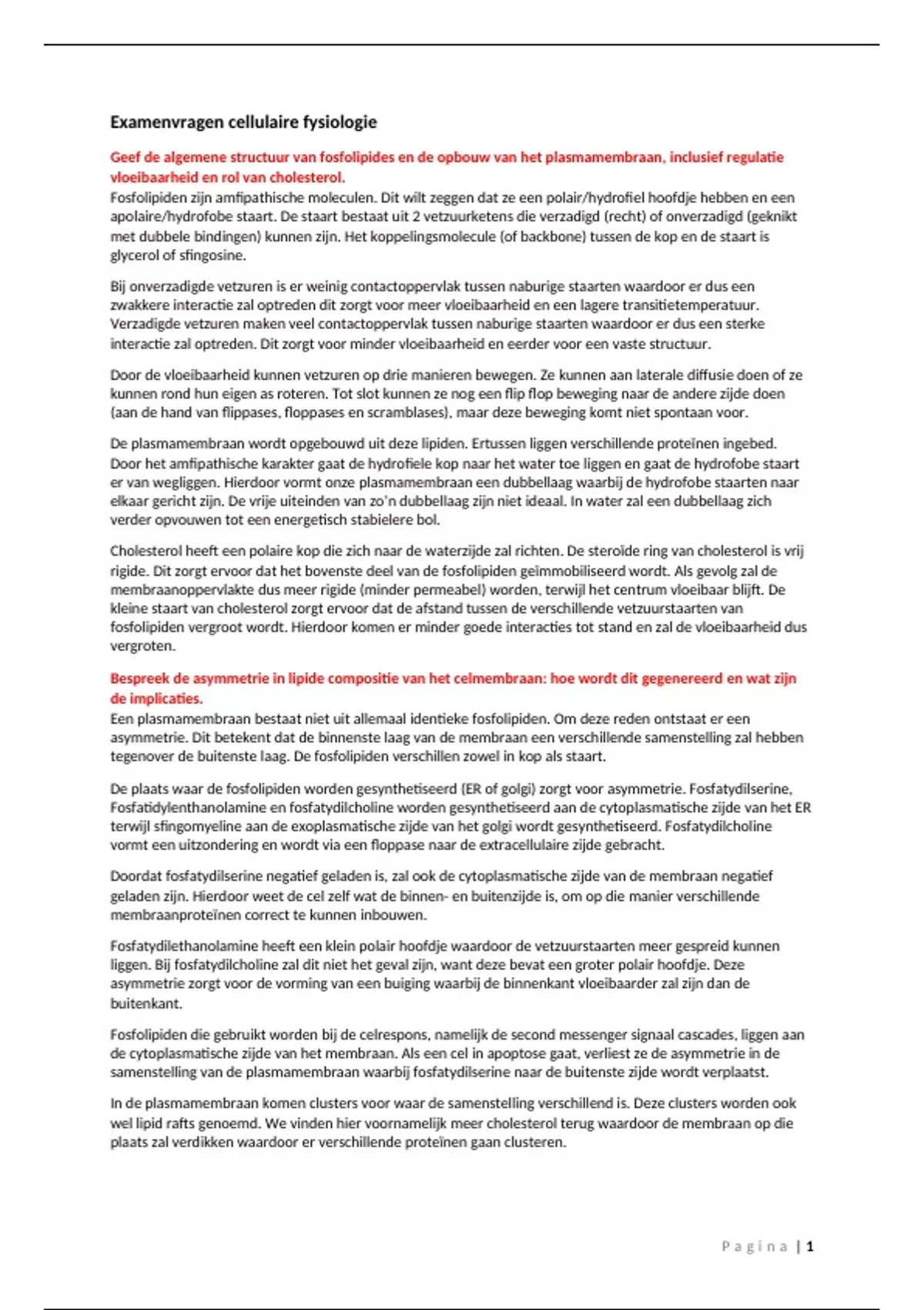 Bespreek de asymmetrie in lipide compositie van het celmembraan: hoe wordt dit gegenereerd en wat zijn