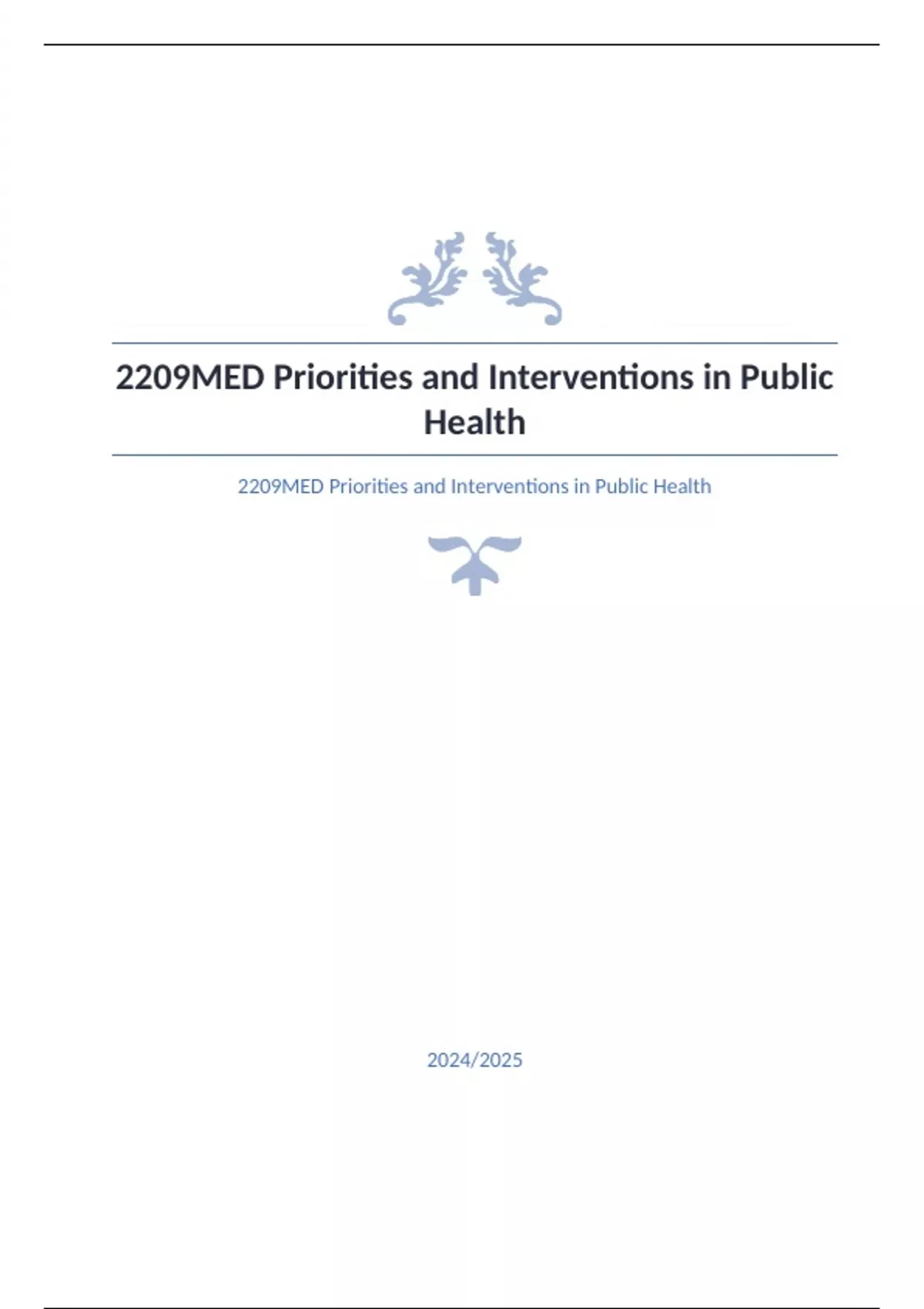 2209MED Priorities and Interventions in Public Health Question and answers rated A+