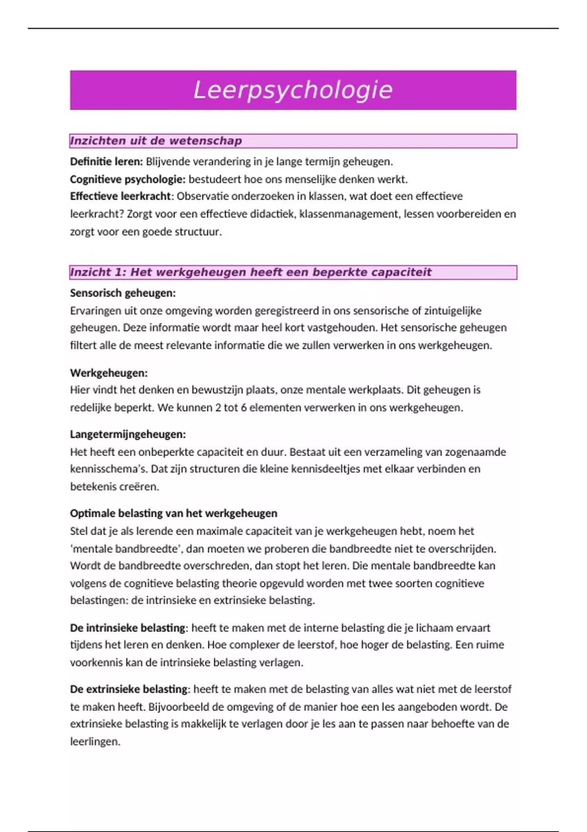 schoolvakken. Hierbij zijn de intrinsieke en extrinsieke belasting van belang.