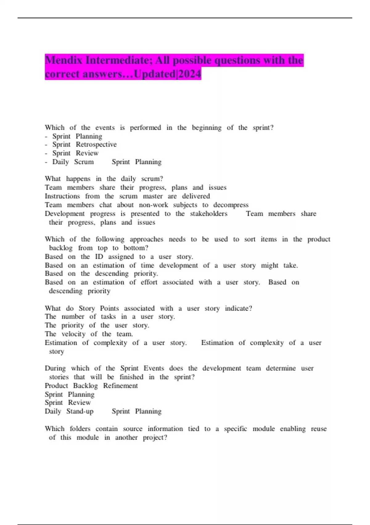 Mendix Intermediate; All possible questions with the correct answers…Updated|2024