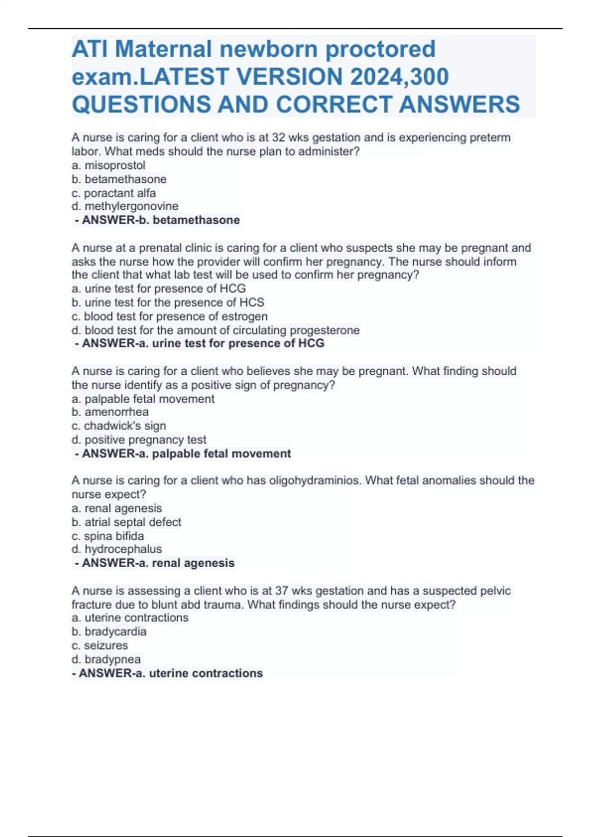 A nurse is assessing a client who is at 37 wks gestation and has a suspected pelvic