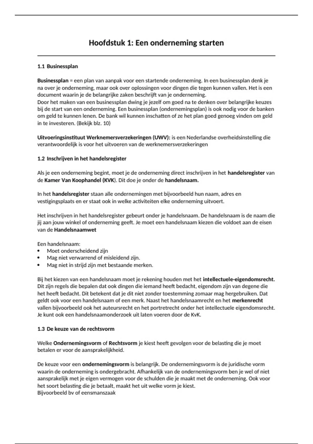 document waarin je de belangrijke zaken beschrijft van je onderneming.