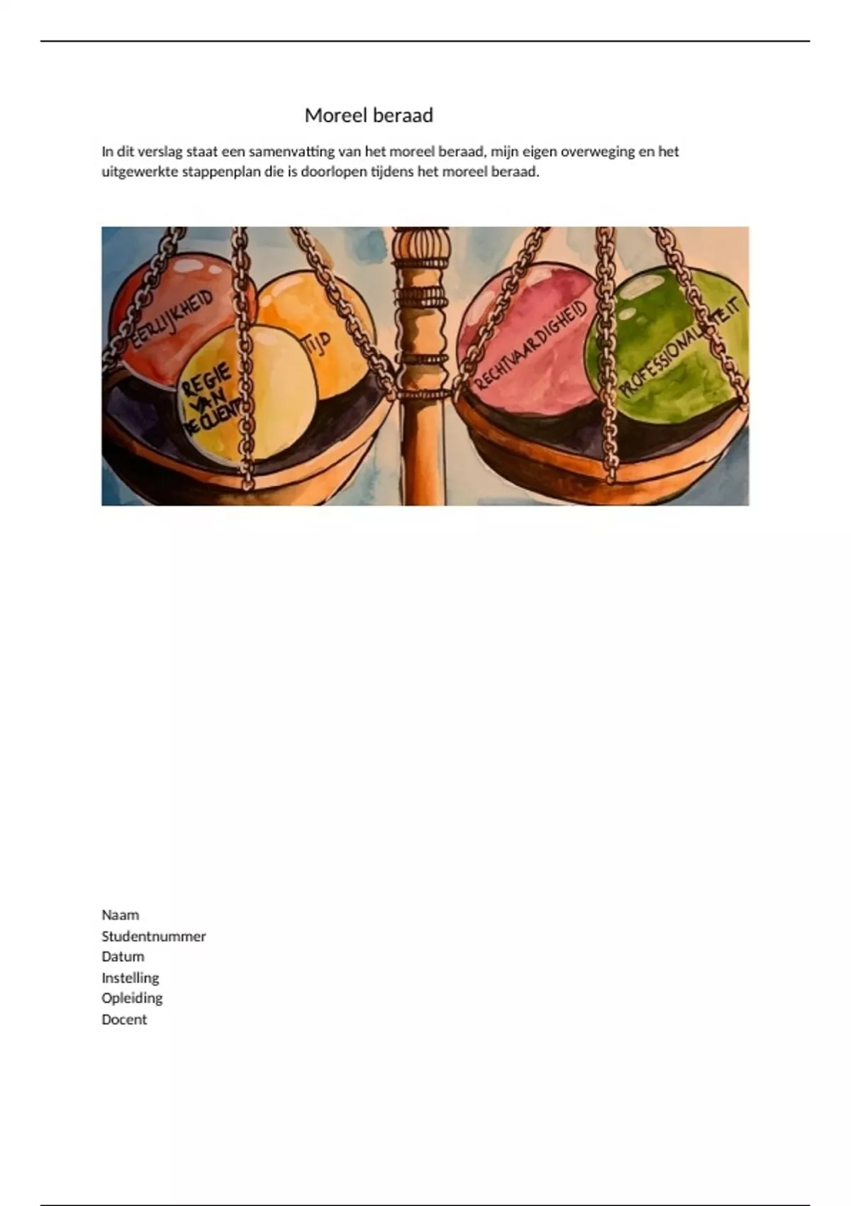 moreel beraad. Daarnaast beschrijf ik mijn eigen overwegingen bij het maken van een keuze met