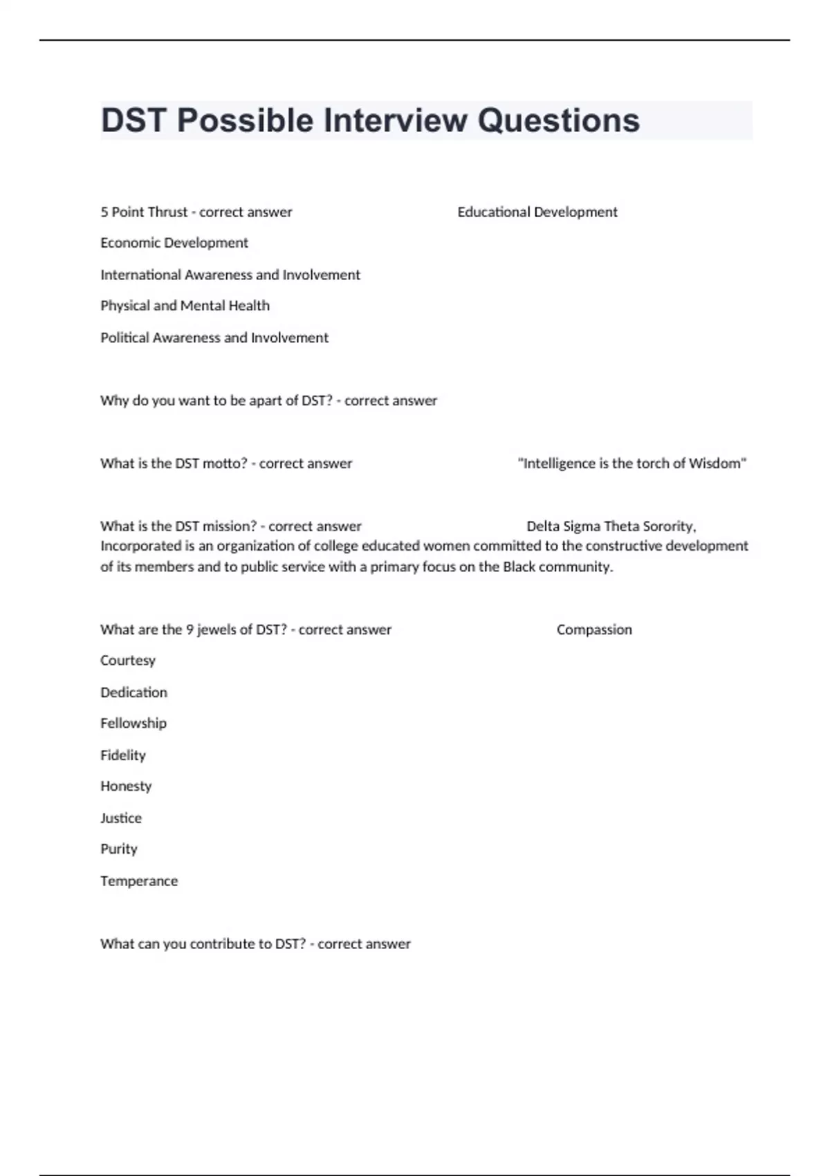 What is the DST mission? - correct answer Delta Sigma Theta Sorority,