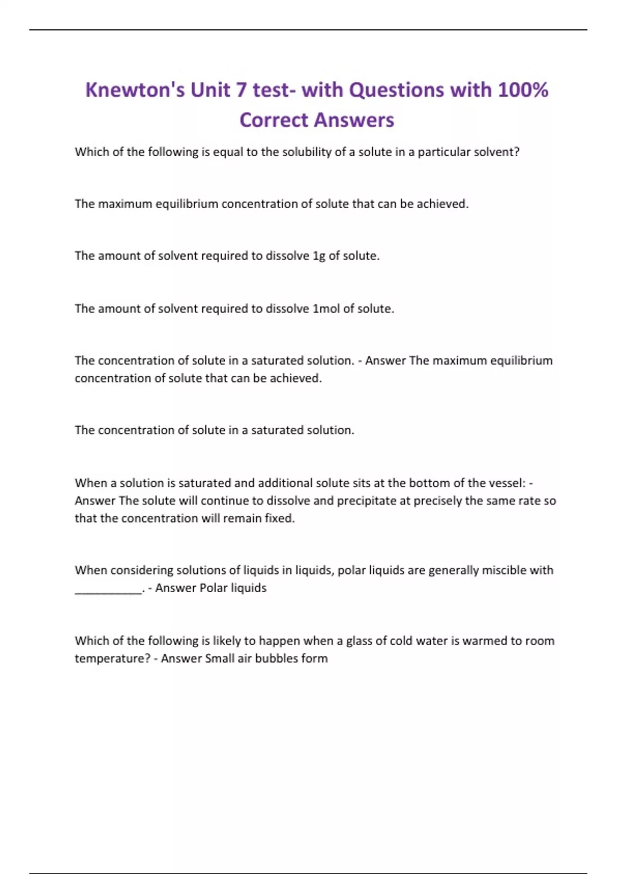 Knewton's Unit 7 test- with Questions with 100% Correct Answers