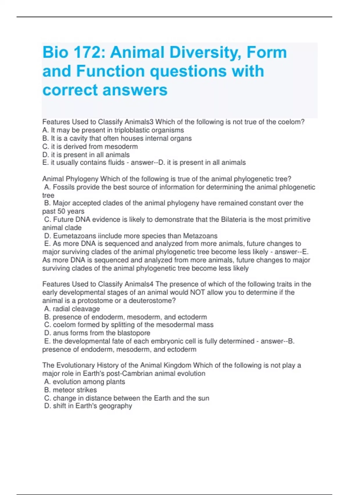- Bio 172 Animals