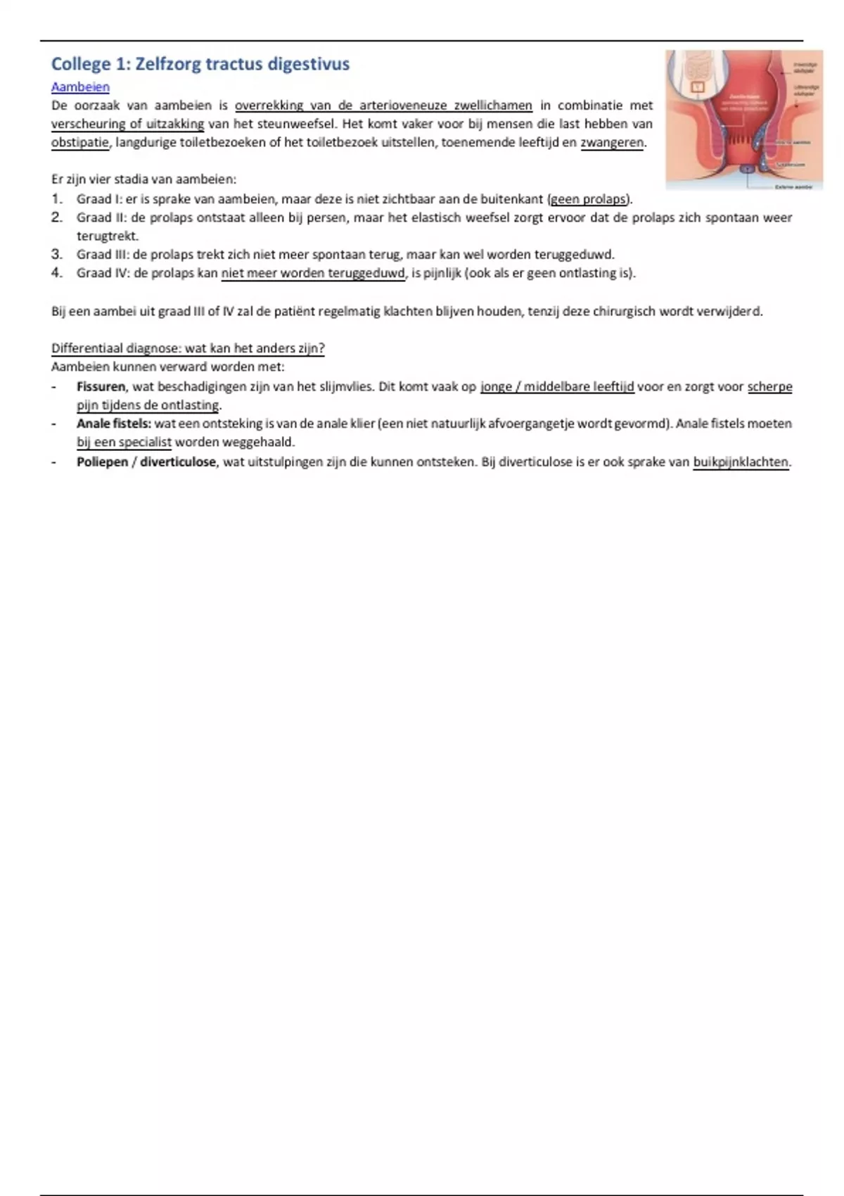 College 1: Zelfzorg tractus digestivus
