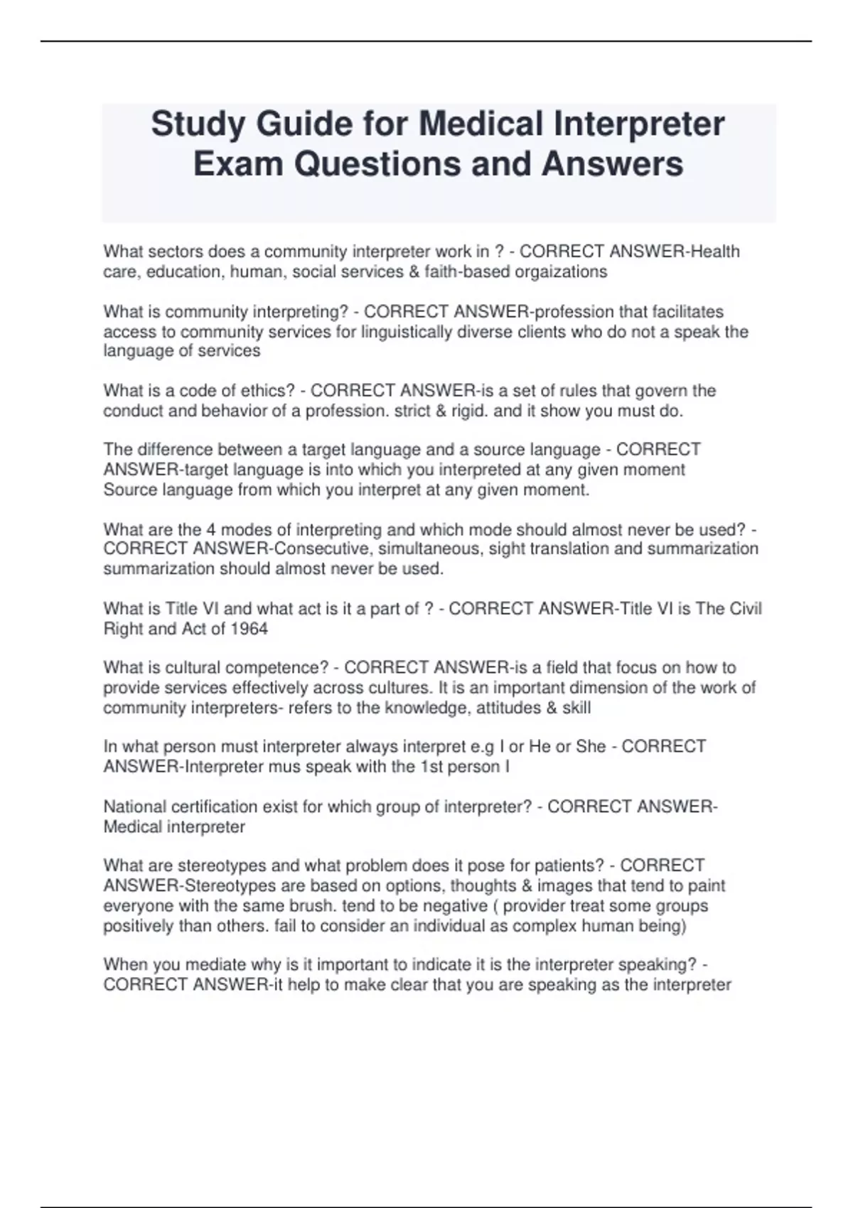 National certification exist for which group of interpreter? - CORRECT ANSWER-