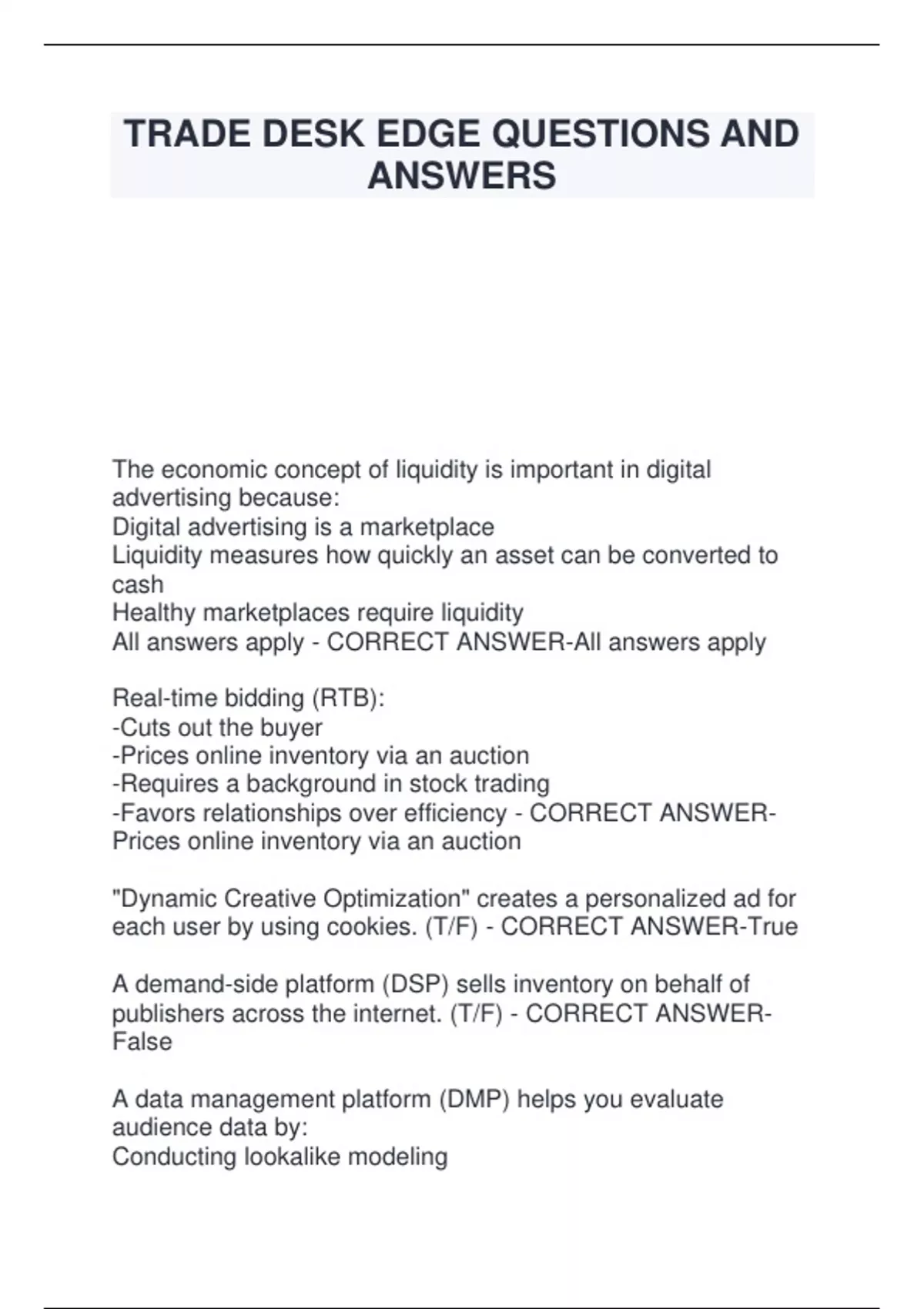 publishers across the internet. (T/F) - CORRECT ANSWER-