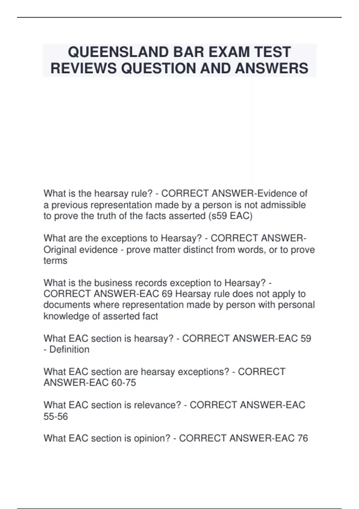 CORRECT ANSWER-EAC 69 Hearsay rule does not apply to