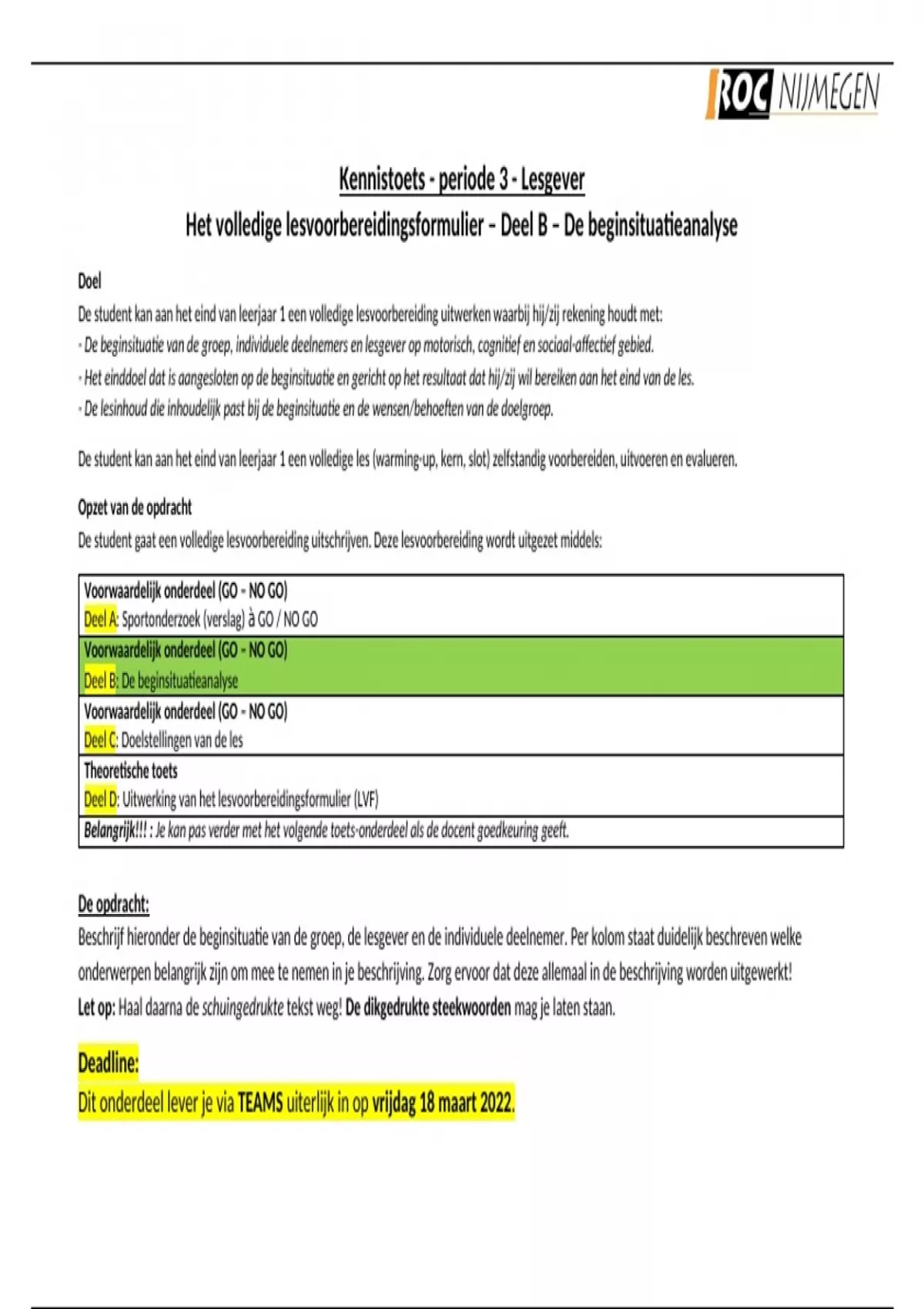 De student gaat een volledige lesvoorbereiding uitschrijven. Deze lesvoorbereiding wordt uitgezet middels: