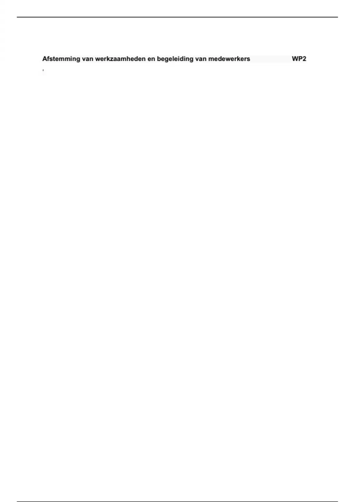 WP2 Afstemming van werkzaamheden en begeleiding van medewerkers