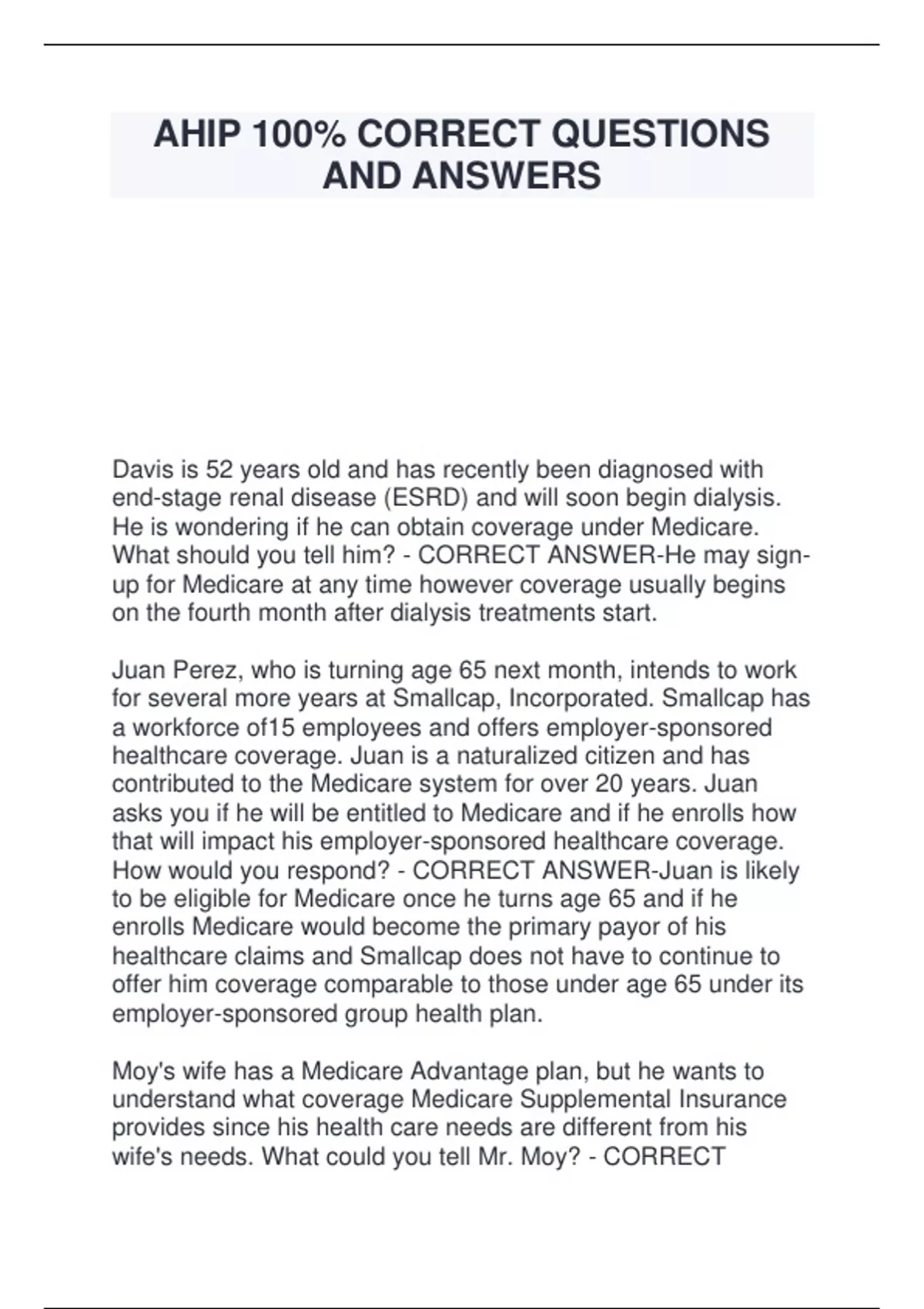 her to address her concern? - CORRECT ANSWER-Medicare