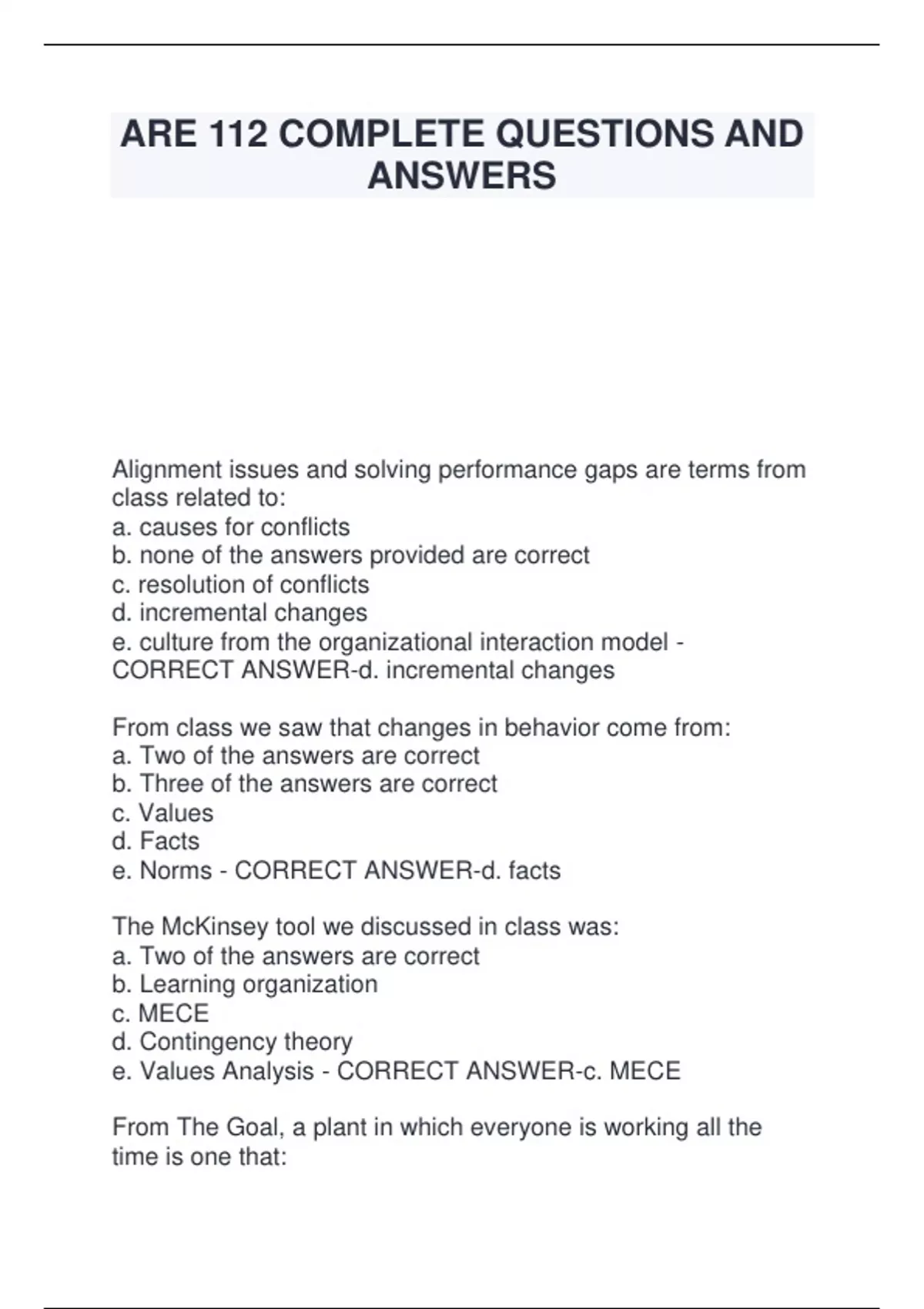 e. two of the answers are correct - CORRECT ANSWER-c.