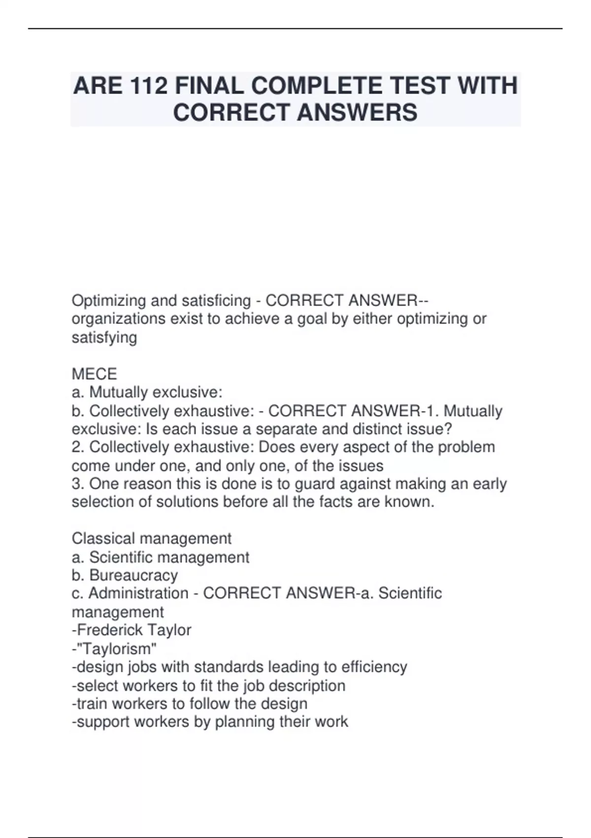 b. Collectively exhaustive: - CORRECT ANSWER-1. Mutually