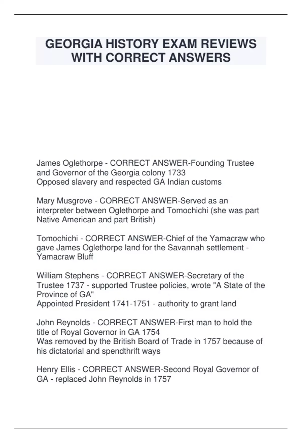 Mary Musgrove - CORRECT ANSWER-Served as an