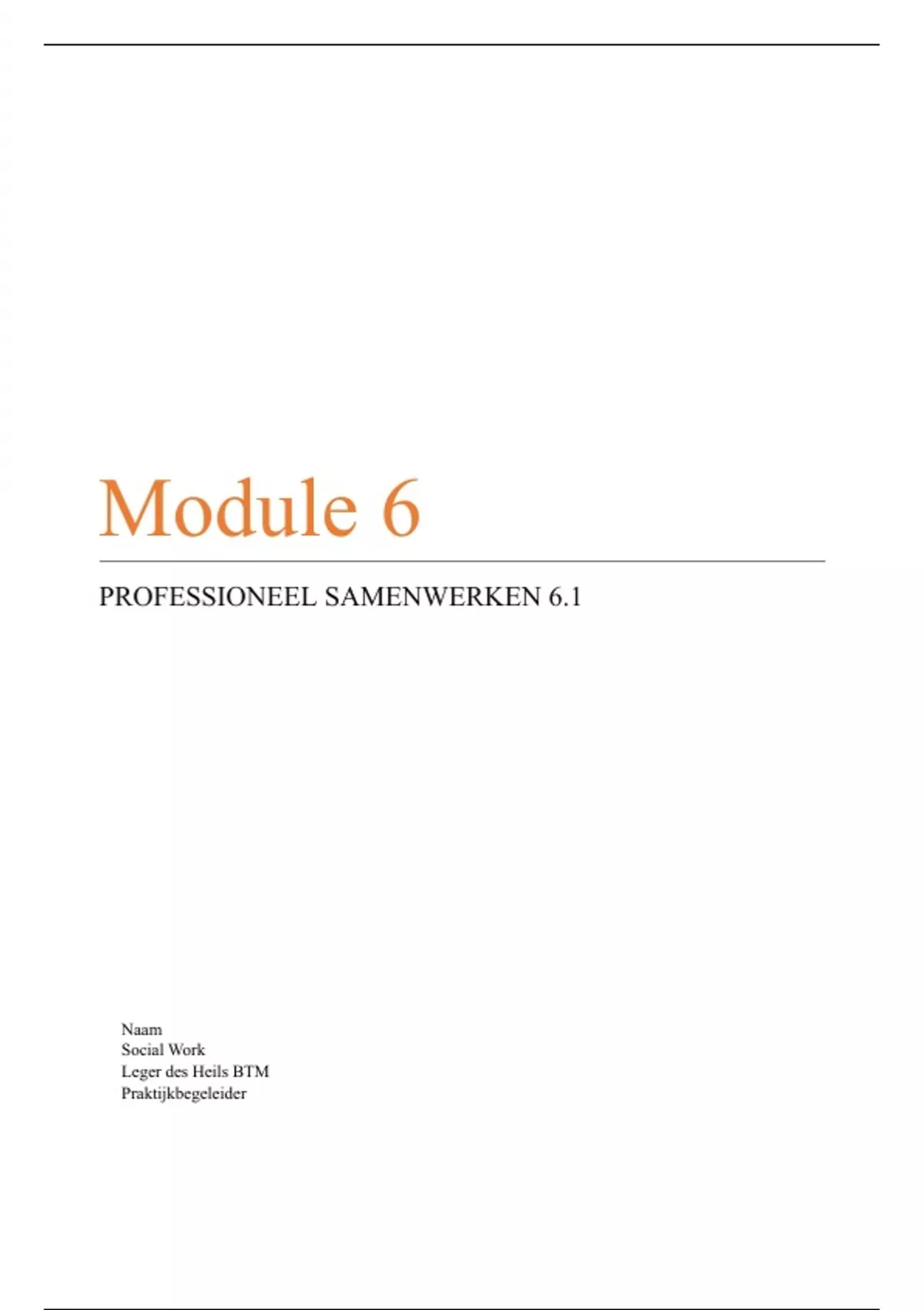 Christelijke Hogeschool Ede module 6.1 samenwerken. Dit verslag voldoet aan de beoordelingscriteria en is beoordeeld met een G. Ik hoop dat het jou kan helpen om je opdracht te halen, maar ook ter inspiratie voor jouw samenwerkingen in het werkveld. Succes!