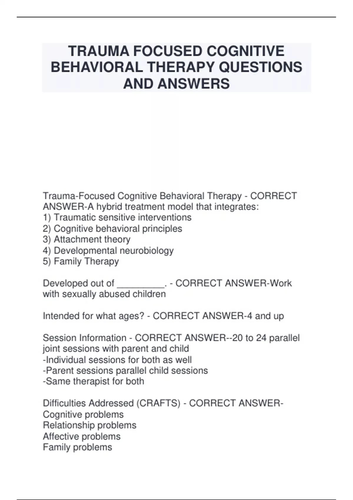 Trauma-Focused Cognitive Behavioral Therapy - CORRECT