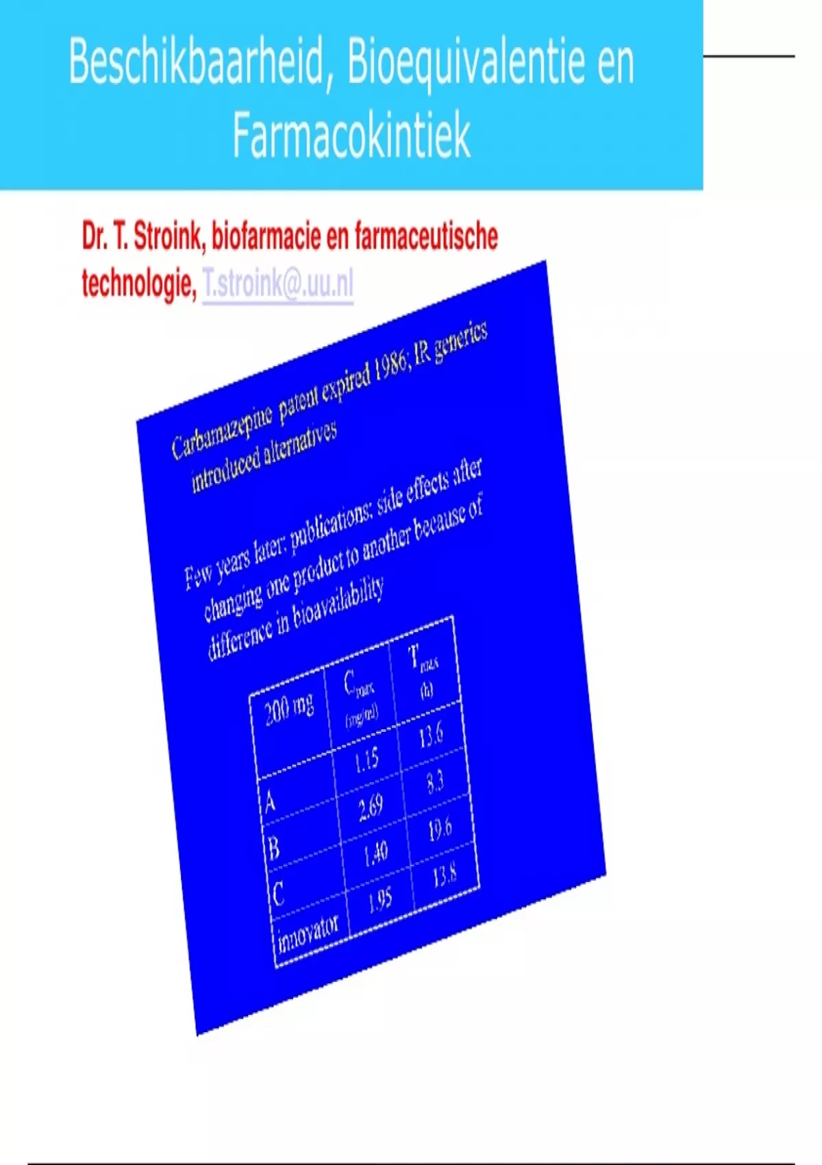 Dr. T. Stroink, biofarmacie en farmaceutische