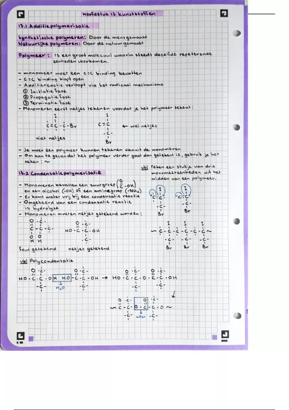 Samenvatting Chemie overal 5vwo hoofdstuk 13 kunststoffen samengevat