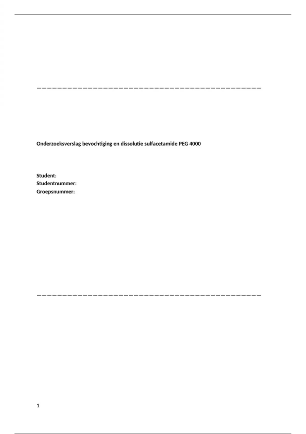 Onderzoeksverslag bevochtiging en dissolutie sulfacetamide PEG 4000