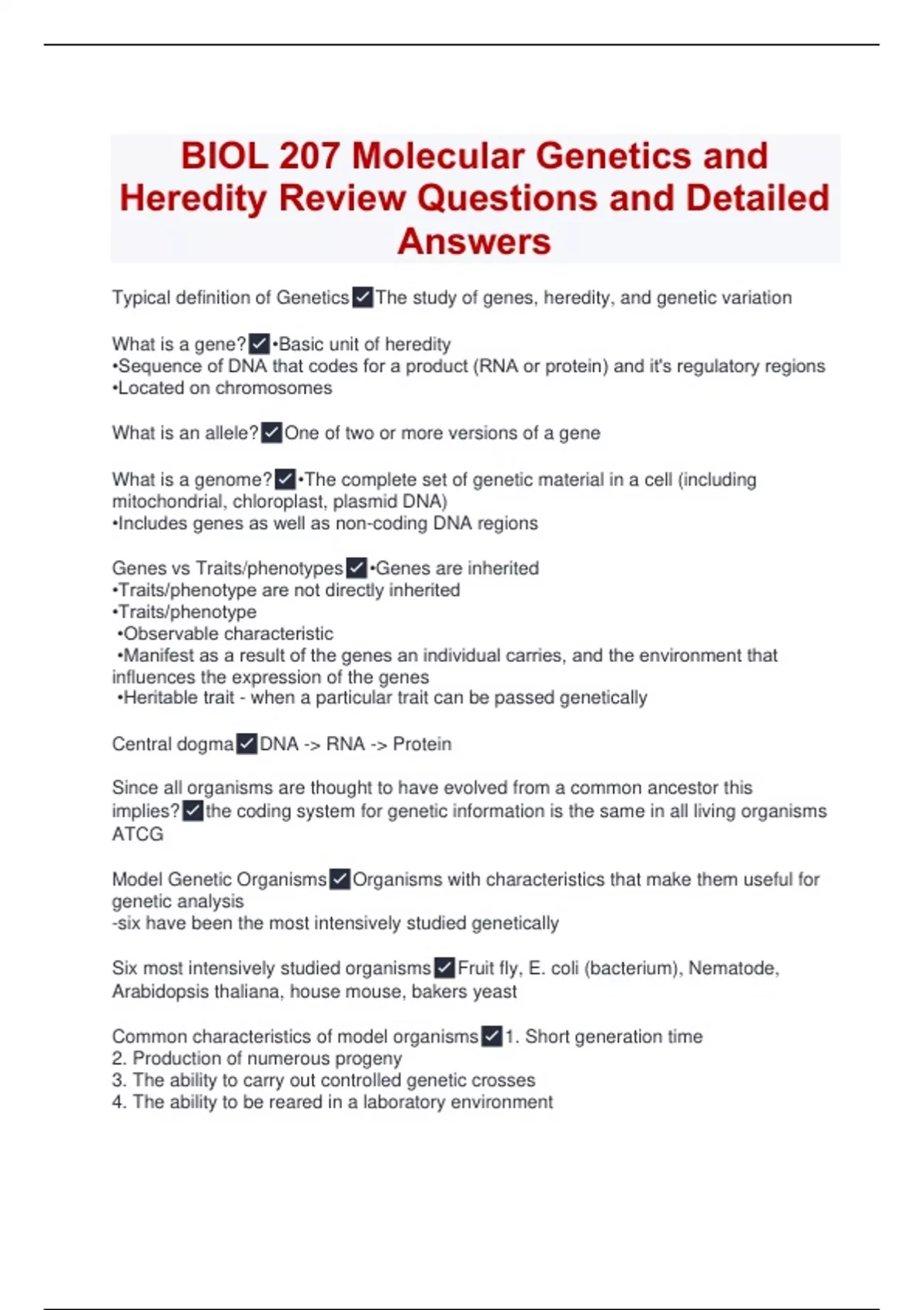 BIOL 207 Molecular Genetics and Heredity Review Questions and Detailed Answers