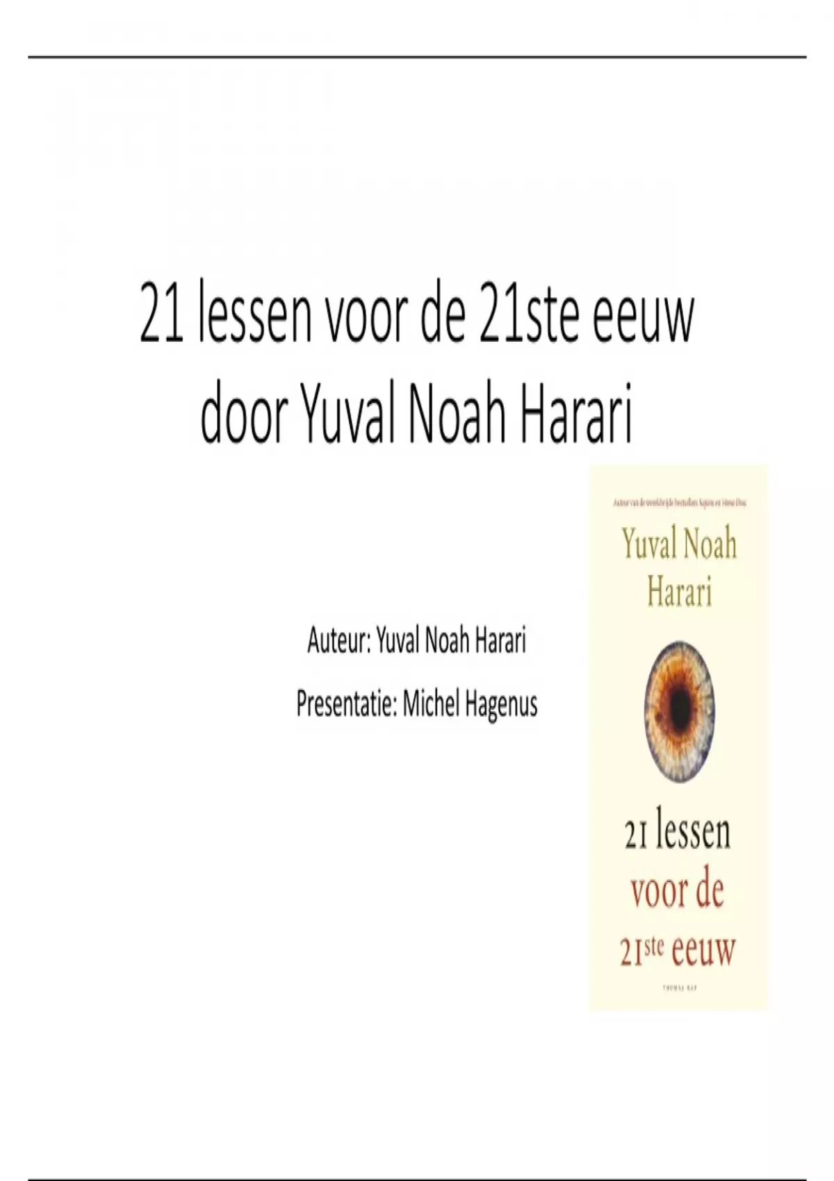 • Boek 21 lessen voor de 21e eeuw: over het hier en nu en nabije toekomst