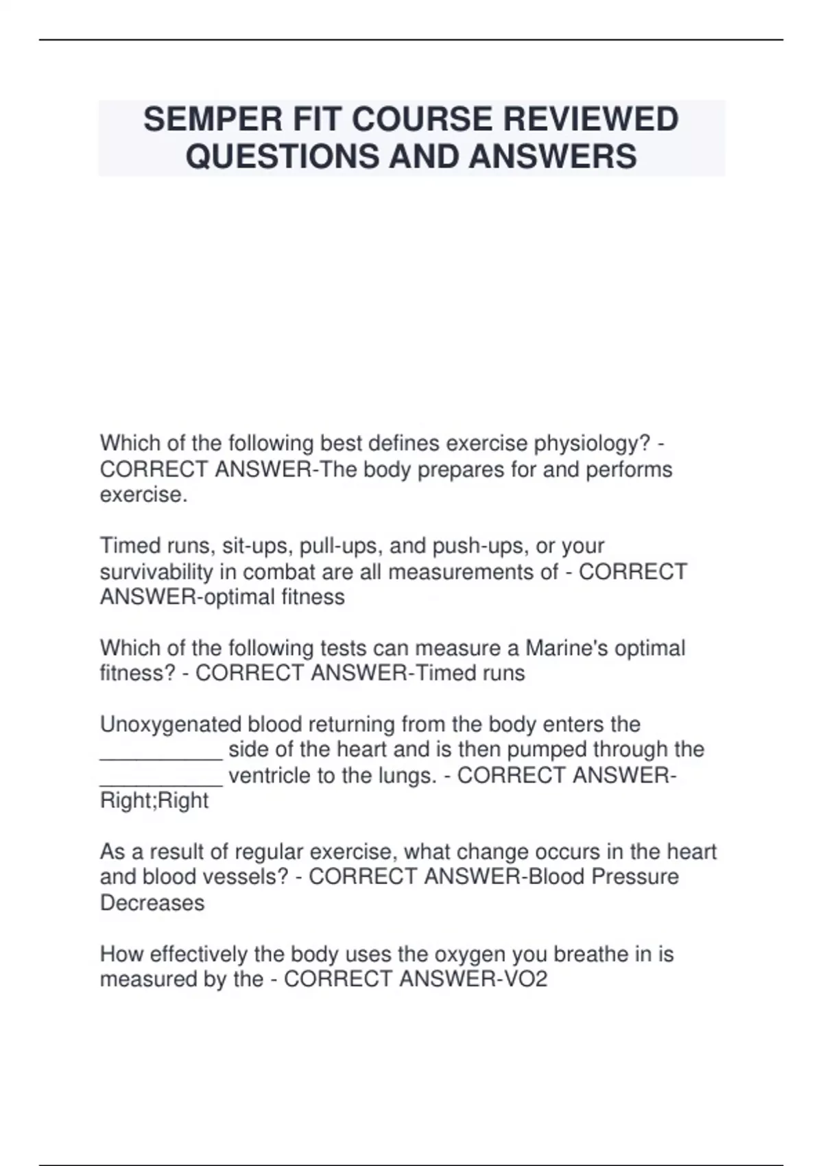 CORRECT ANSWER-The body prepares for and performs