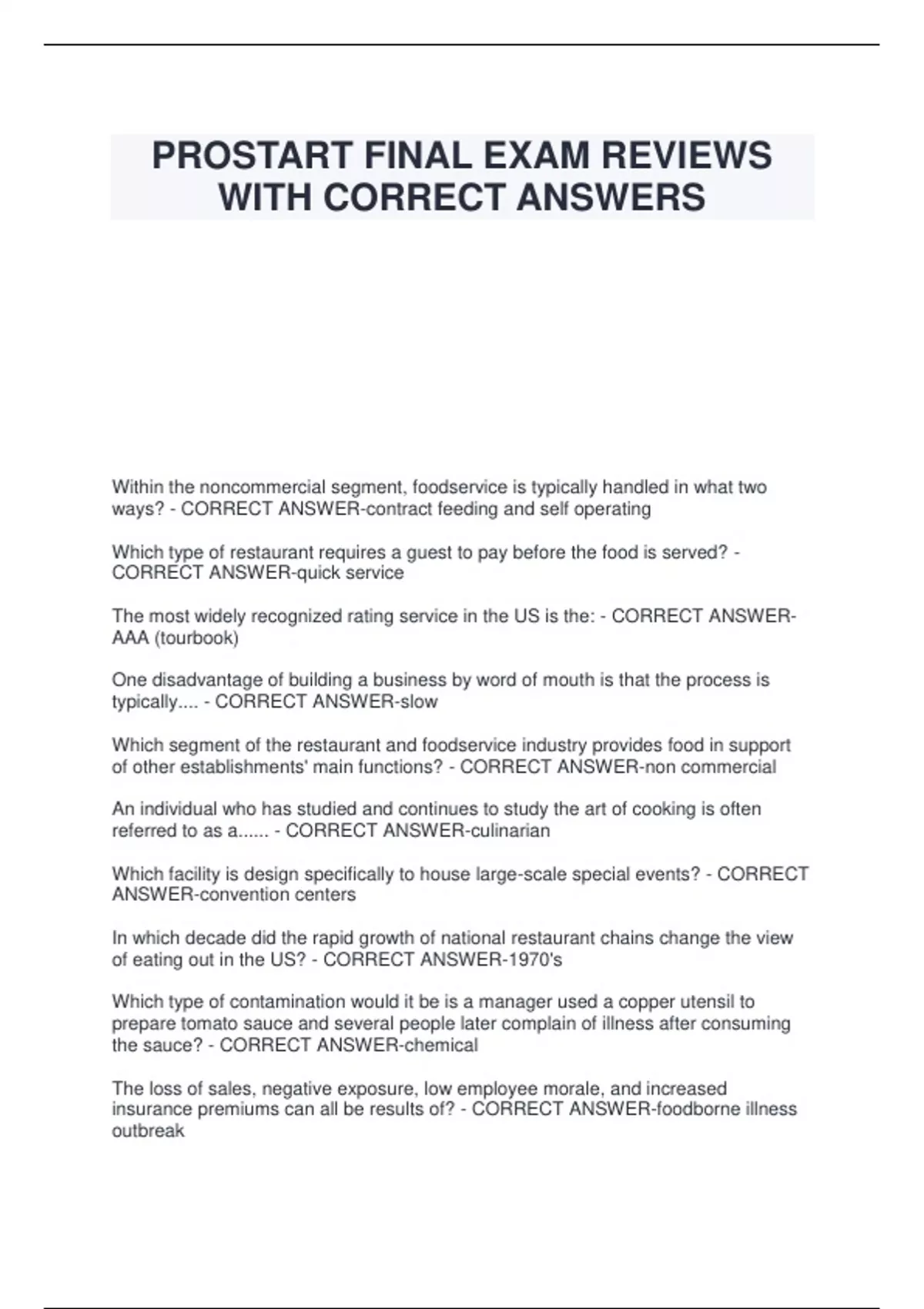 CORRECT ANSWER-quick service