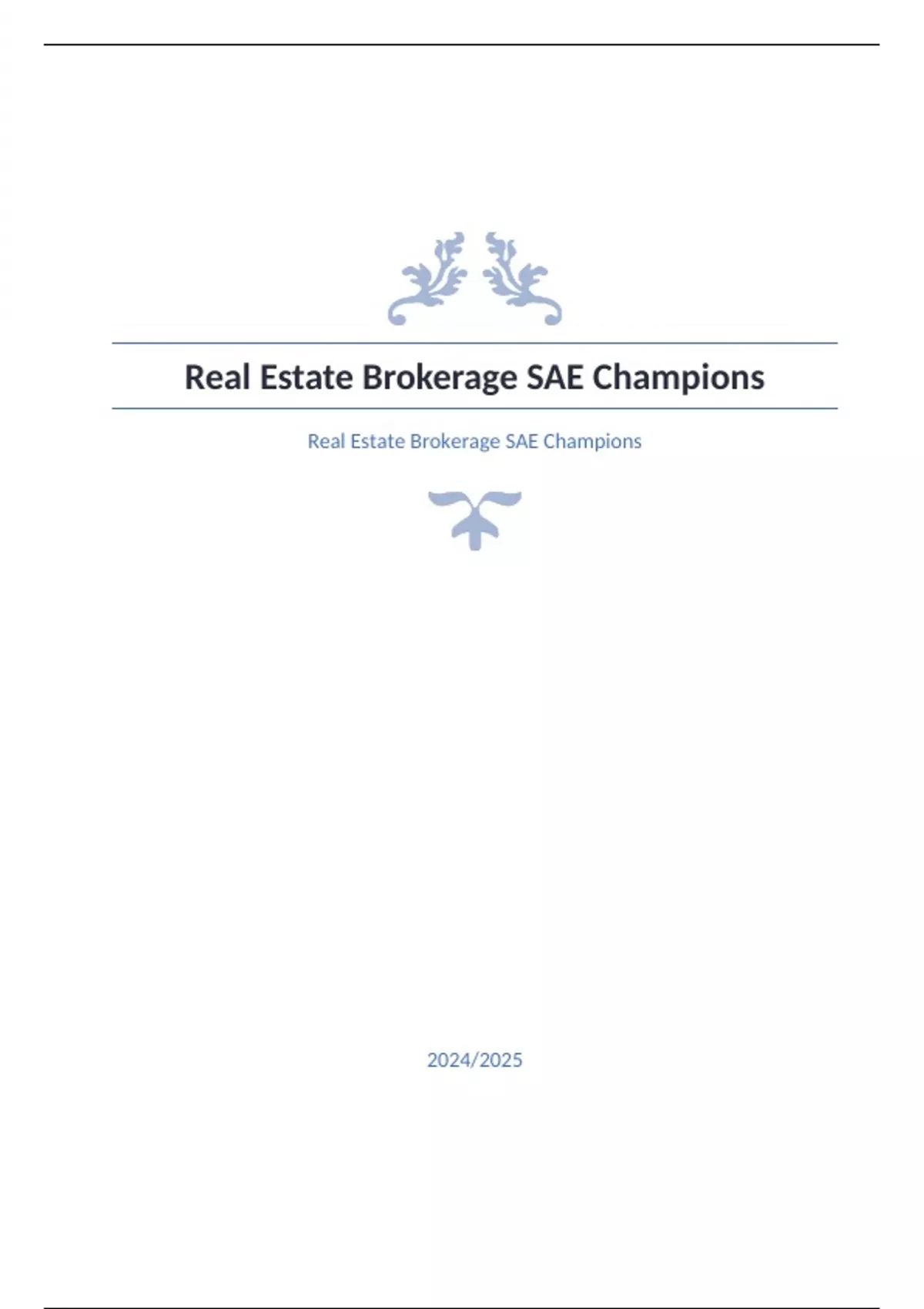 Real Estate Brokerage SAE Champions Question and answers rated A+