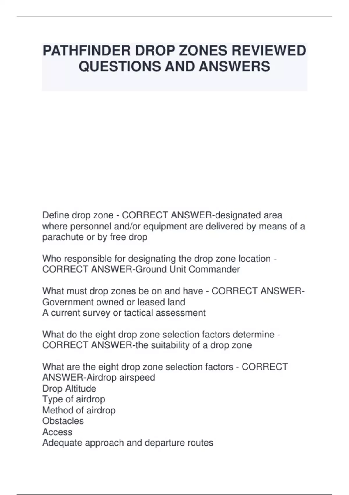 What are the eight drop zone selection factors - CORRECT