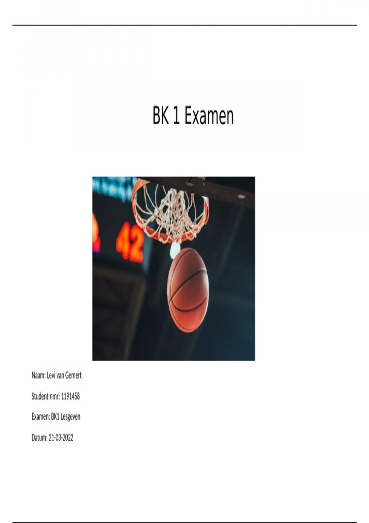 in dit document staat alles van mijn bk1 examen lesgeven die ik met een goede voldoende heb behaald. alles staat erin wat er in hoort te staan dus niks ontbreekt!