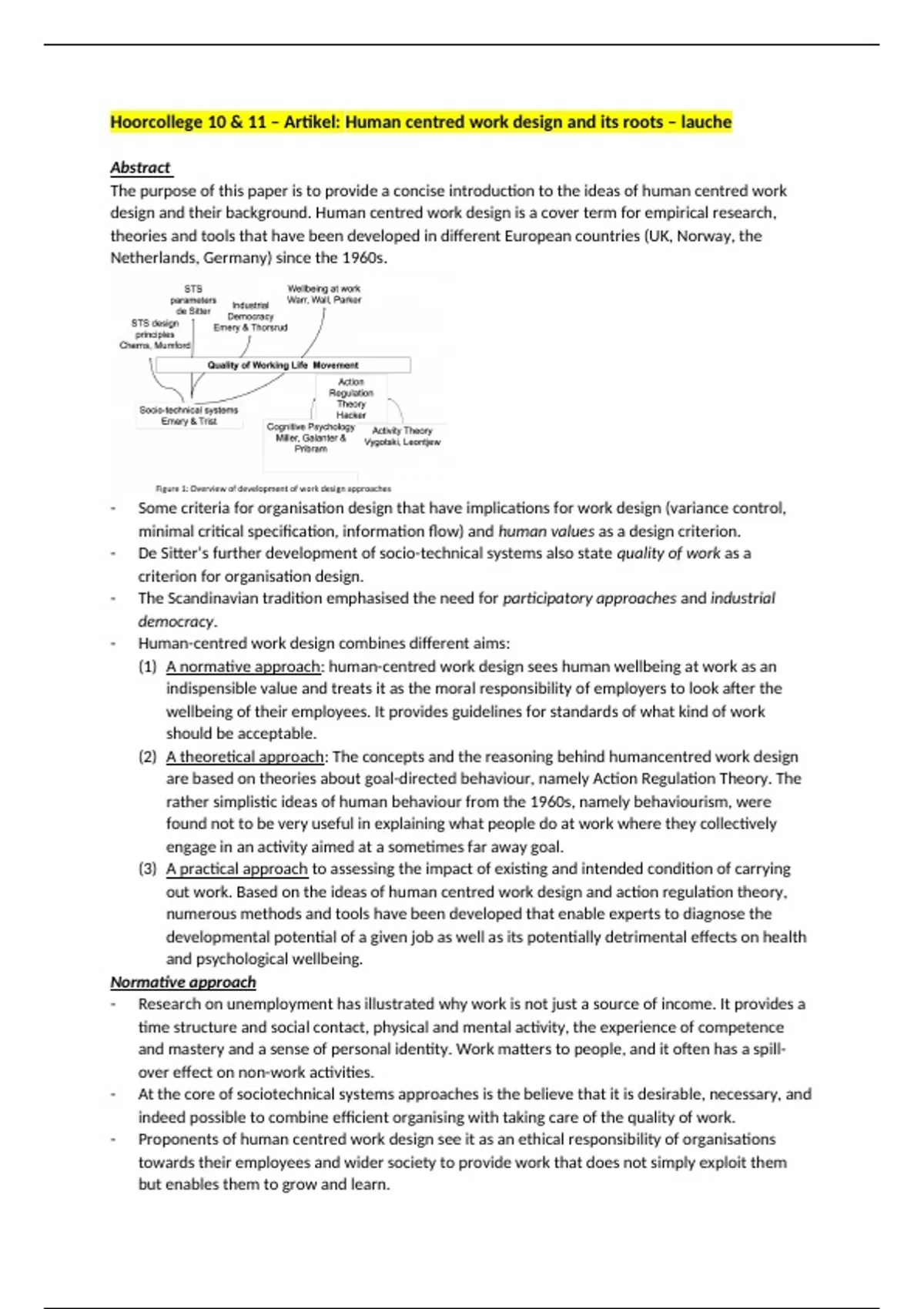Hoorcollege 10 & 11 – Artikel: Human centred work design and its roots – lauche