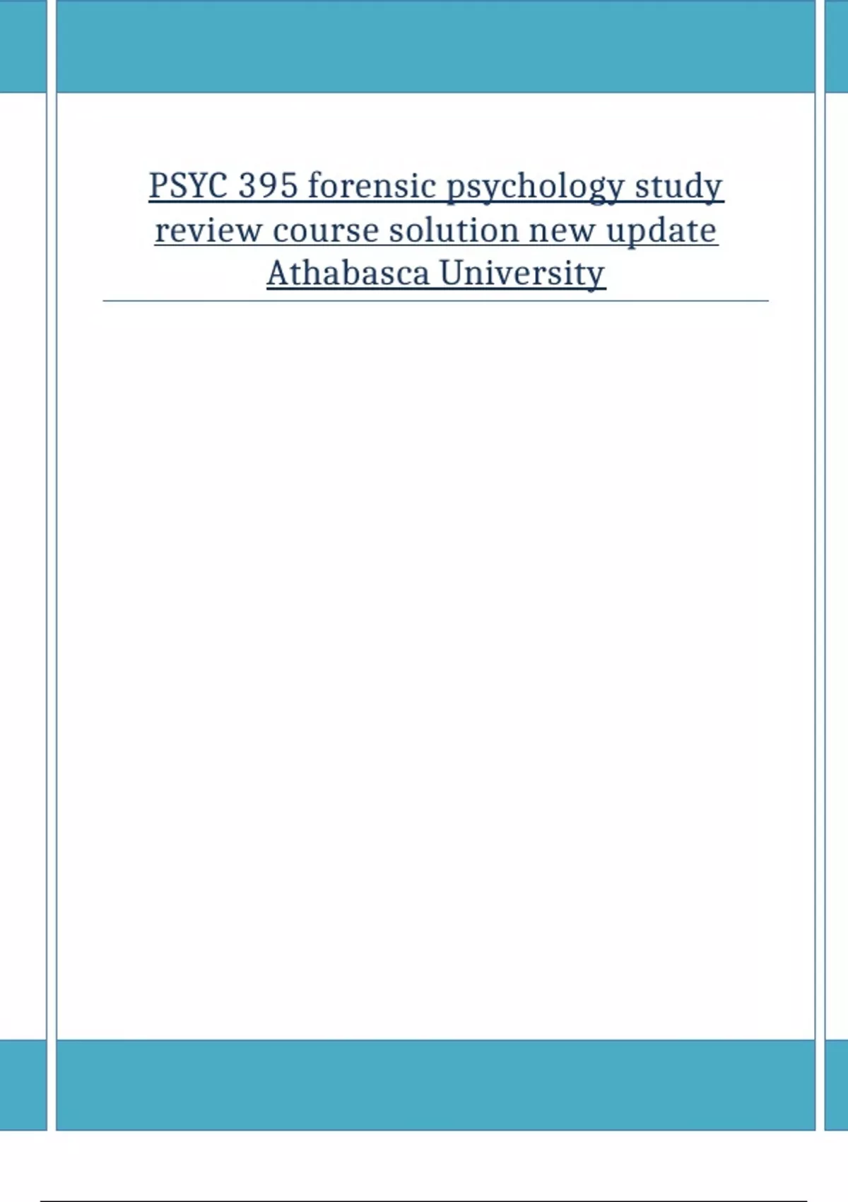 PSYC 395 forensic psychology study review course solution new update Athabasca University