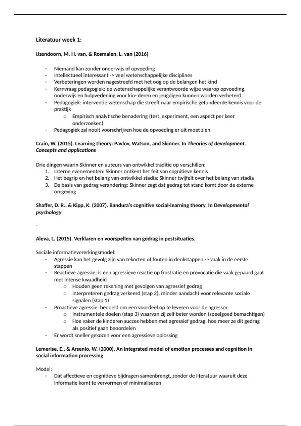 Samenvatting van alle literatuur voor het vak kind en omgeving van de uu