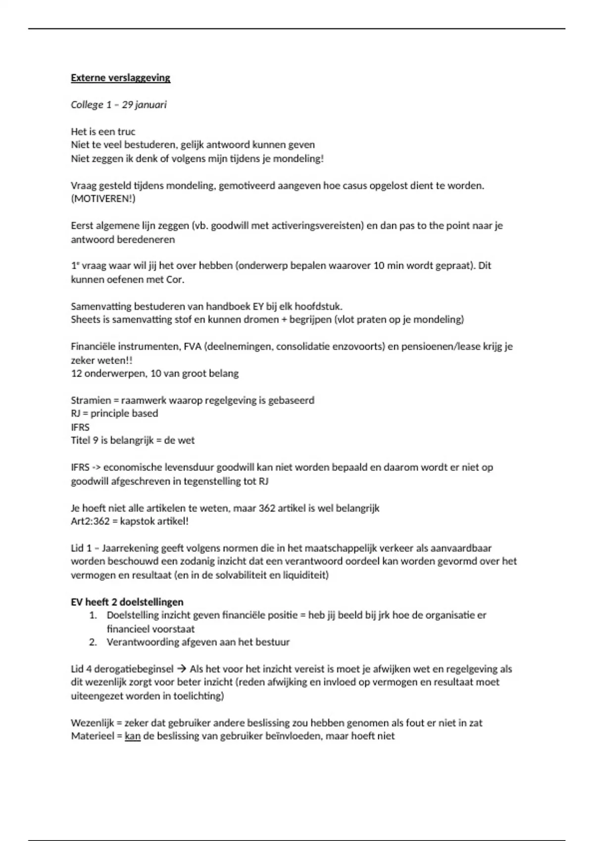 Samenvatting bestuderen van handboek EY bij elk hoofdstuk.