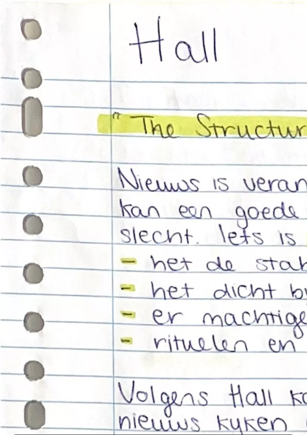 Dit is de samenvatting waar ik afgelopen jaar een goed cijfer mee heb gehaald voor mijn laatste toets. Schrik niet van handgeschreven, mijn handschrift is netjes en duidelijk en de informatie is duidelijk van elkaar gescheiden (met marker). Het is een samenvoeging van aantekeningen tijdens de hoor- en werkcolleges, de PowerPoints, de teksten en andere samenvattingen. Het bevat een samenvatting van de Hoorcolleges en de teksten waarin de belangrijke begrippen en leesvragen worden beantwoord.