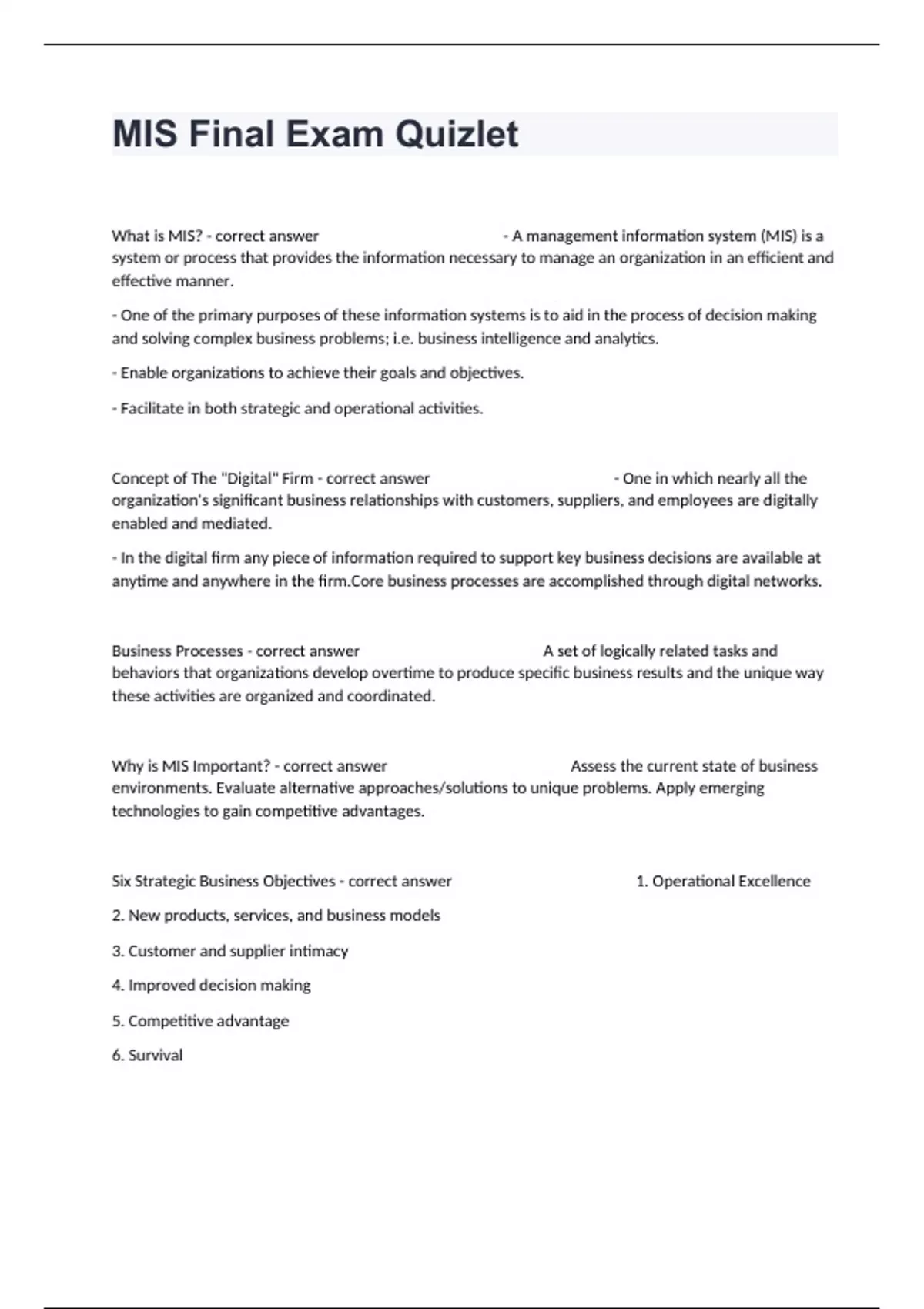 MIS Final Exam Quizlet Actual Questions And Correct Detailed Answers.