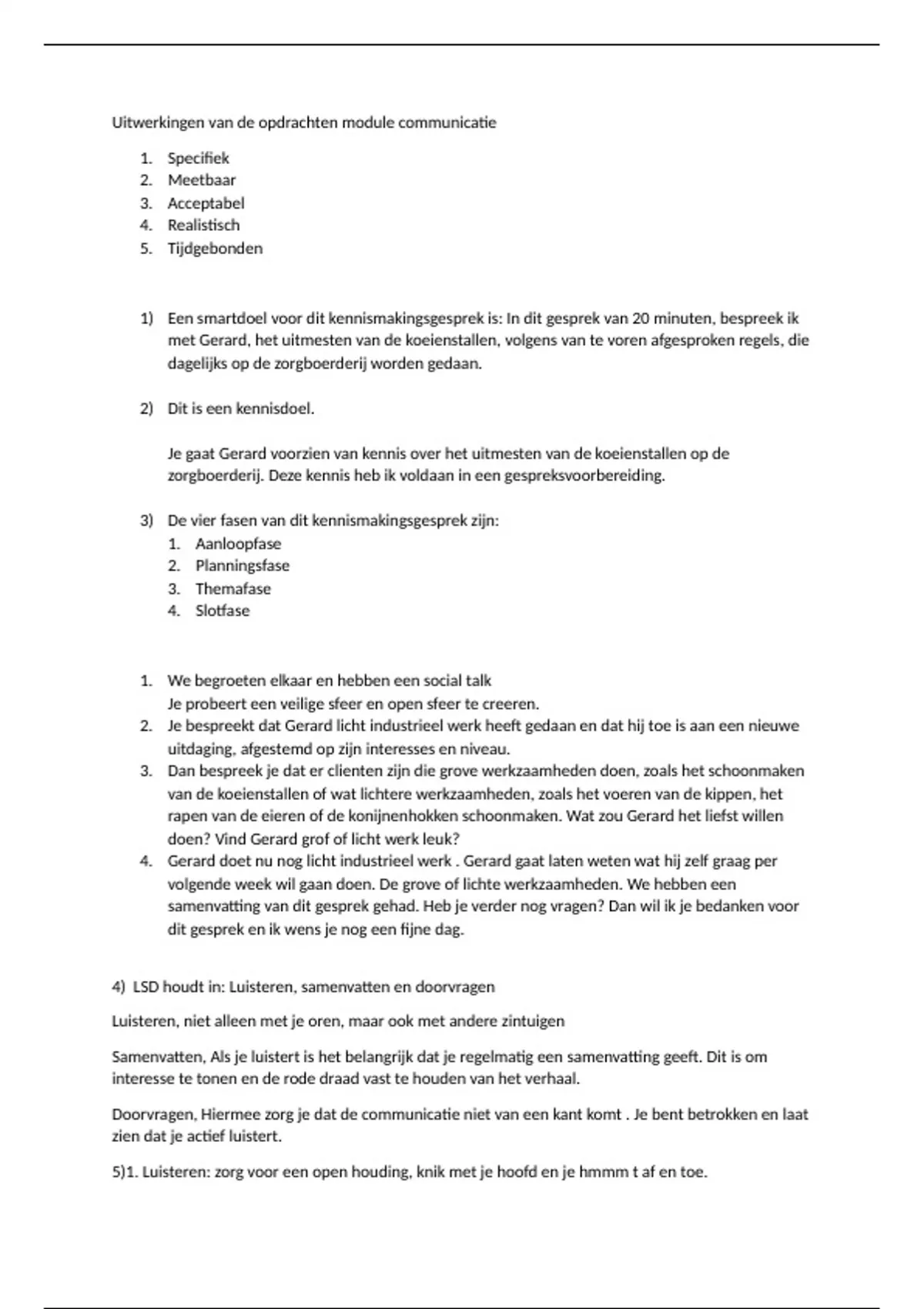 1) Een smartdoel voor dit kennismakingsgesprek is: In dit gesprek van 20 minuten, bespreek ik